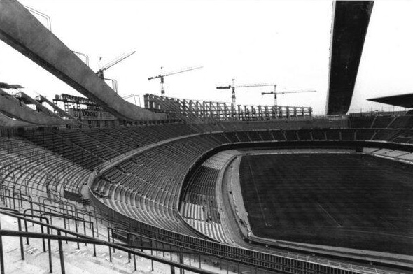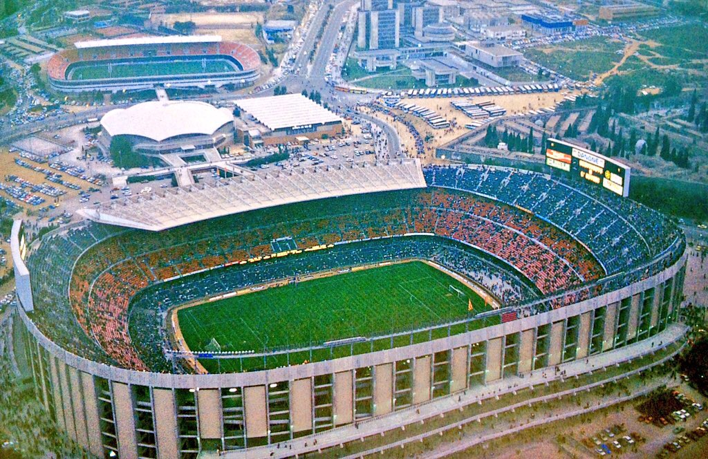Club finances were not helped by the protracted saga that surrounded the sale of Les Corts. When it was finally sold in 1967, all of the 226 million pesetas raised was used to pay off the club debt. With the club’s finances back under control, the club set about rebuilding the team and developing the next stage of the sports complex. 1971 saw some significant changes. The first was the building of the Palau Blaugrana, an indoor sports hall, and an Ice Rink. This would be home to the club’s basketball, handball, volleyball, roller hockey & ice hockey teams, and generate valuable additional revenue as a concert arena. On the pitch, the great Dutch coach Rinus Michels was employed, and thanks to his persuasive powers, Johan Cruyff chose Barça ahead of Real Madrid. The league title returned to the Camp Nou at the end of the 1973-74 season, and the Copa del Rey followed three years later. As for the stadium, except for two electronic scoreboards, it remained unaltered until the lead up to the 1982 World Cup.