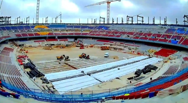 The redevelopment would see the realignment of the lower tier, addressing the shallow rake of the seats, which has proved problematic since the pitch was lowered in 1993. A new ring of corporate boxes will be built, which will add 3,500 VIP seats along with restaurants and improved media facilities. The North & South Grada’s will be extended, rounding off the ends that tapered down towards the main stand. The old roof was to be removed and another tier added to complete the bowl. A ring of roof piles will be incorporated within a new exterior, and finally, a 3-ringed cantilevered roof was to be constructed to cover all four sides of the stadium. All very good on paper and in a slick video presentation; however, the reality was very different. Barça’s debt rose to over €1 billion, and as great players moved on or retired, the seemingly endless flood of trophies turned into a trickle. The start date of the redevelopment kept being pushed back, first, it would be 2017, then it would start 2019. There was also chaos in the boardroom, which paved the way for Joan Laporta to return as president in March 2021. Throughout this 7-year period, the only physical evidence of the the project was the demolition of the Mini Estadi.