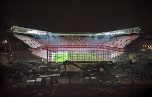 In March of 2007, architect César Azkarate of ACXT-IDOM presented his plans for a 3-tiered 56,000-seat stadium that took much of its influence from the stadiums that had been developed for the 2006 World Cup, particularly those in Munich and Hamburg. The issues of financing were finally resolved with funding coming from five partners. Athletic Club, BBK (Bilbao Biscay Savings Bank), The Council of Bizkaya and The Basque Regional Government would have a €50m stake in the project, whilst Bilbao City Council committed €11m. Some local politicians called upon Athletic to make a greater contribution to the project, but Athletic remained resolute, reminding everybody of the stadium’s community facilities and the €500,000 they will pay each year in rent. Work finally got underway on 26 May 2010, when the foundation stone was laid and work formally began a month later.