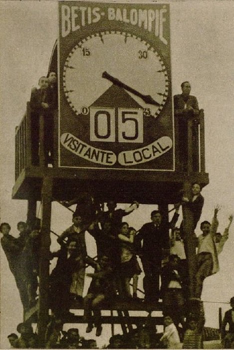 The Campo del Patronato Obrero was basic, and the club, short of funds, used old tables & doors to ensure that the pitch was enclosed. The first match at the new ground took place on 1 November 1918 with Betis playing against Sevilla FC, who ran out 1-5 winners. For the first few years, players changed in a small clubhouse located on the halfway line on the west side of the ground. Fortunately for Betis, there were happier times ahead. The Campo de Patronato Obrero underwent a major overhaul in 1924, which saw the development of a full-length, two-tiered open stand on the west side and a narrow open terrace on the east. The redevelopment was marked with a friendly against US Sants de Barcelona on 13 December 1924. In 1928, under the presidency of Ignacio Sanchéz Majias, Patronato underwent further redevelopment. The main west stand gained an 80 metre-long propped roof, and the northern & southern ends were terraced. An elaborate scoreboard was added to the rear of the north terrace, behind which the club built tennis courts. This latest phase of development increased the ground’s capacity to 9,000 and heralded a golden age for the club.