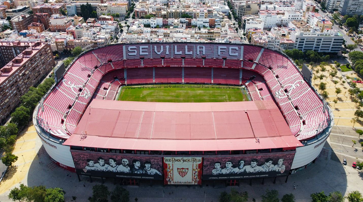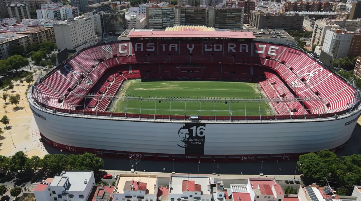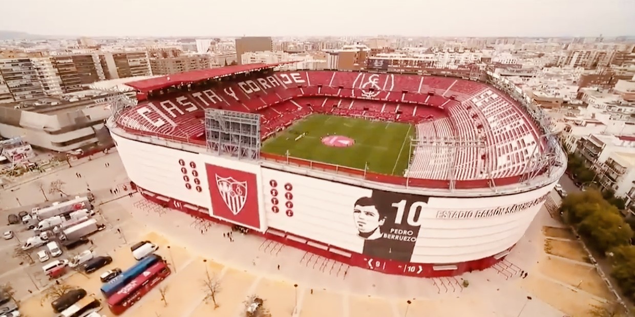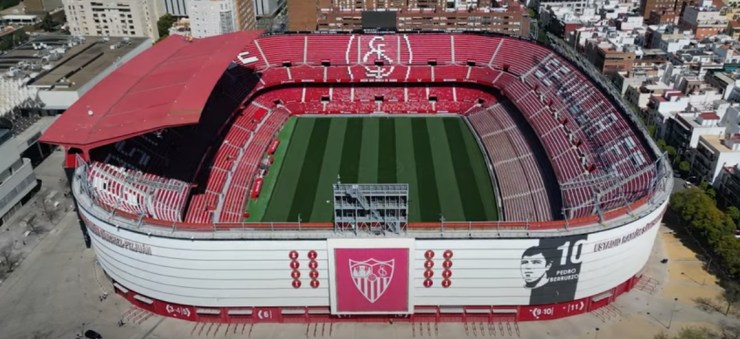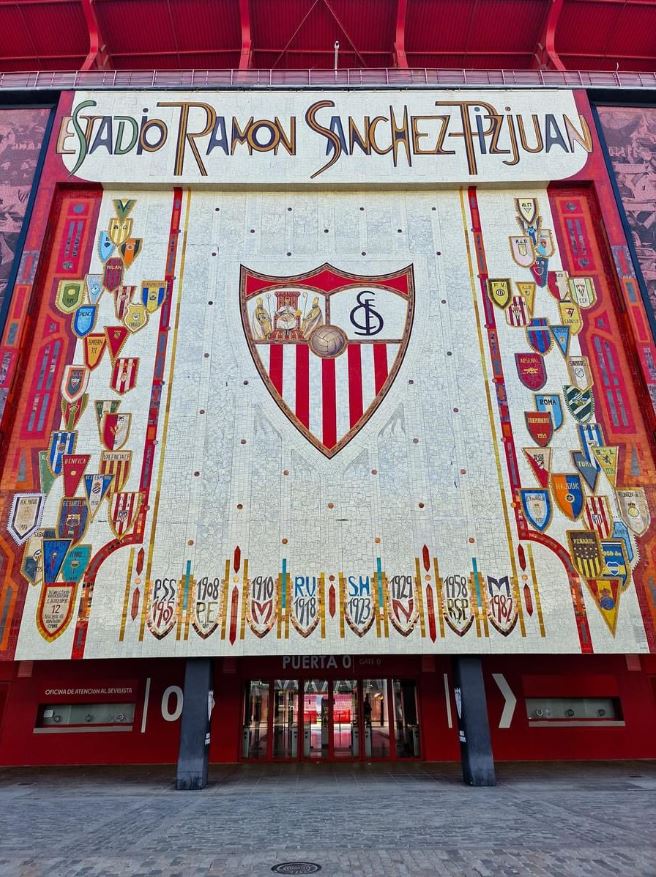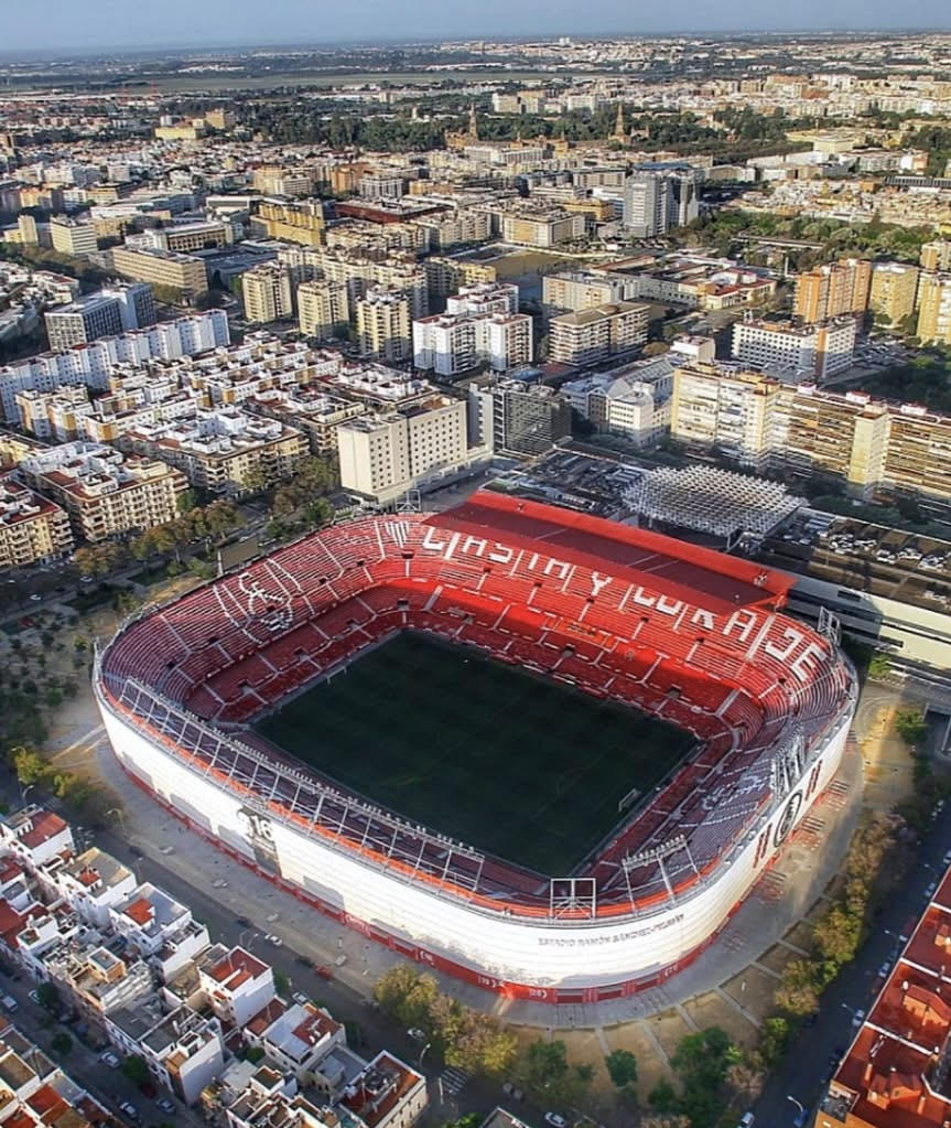 During the summer of 2015, Sevilla decided that their home needed major refurbishment. All 43,000 seats were replaced and the new seats formed the club insignia and slogans (as well as sponsor logos!). New media facilities, mixed zone, medical area & club store were also added in time for the start of the 2015-16 season. Phase two of the revamp saw the outside of the stadium clad in a mesh (as at Valencia’s Mestalla) that feature images of the club’s trophies, legends and a tribute to Antonio Puerta, the midfielder who passed away during a match at the Sánchez Pizjuán in 2007. In the summer of 2018, further changes were made to the lower tier, which saw some vomitories closed and another 950 seats added. In 2022, the stadium hosted the Europa League Final between Eintracht Frankfurt & Rangers.