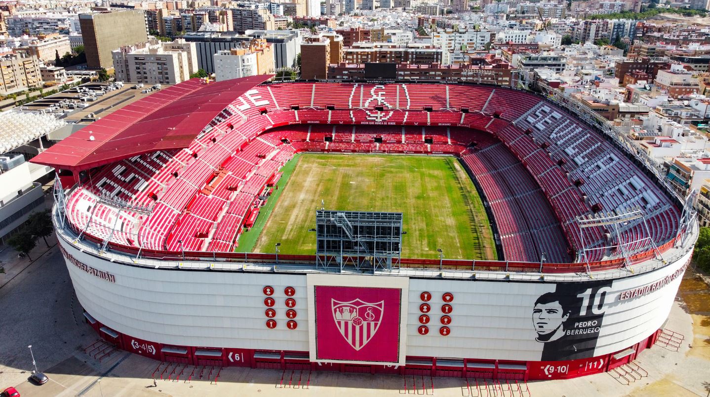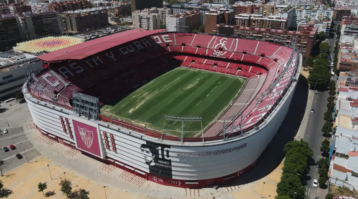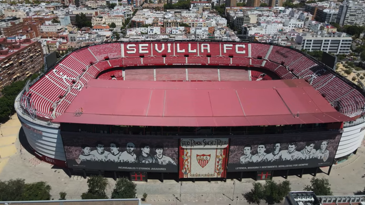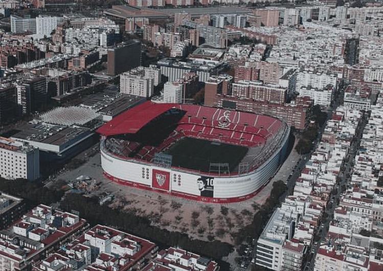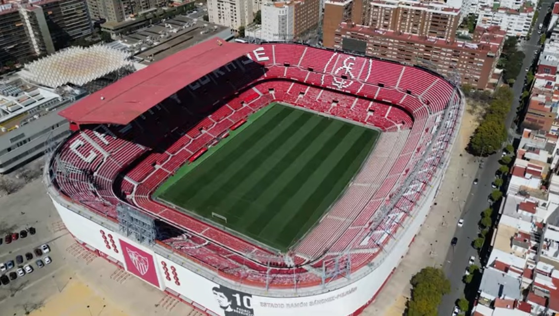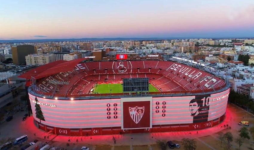 During the summer of 2015, Sevilla decided that their home needed major refurbishment. All 43,000 seats were replaced and the new seats formed the club insignia and slogans (as well as sponsor logos!). New media facilities, mixed zone, medical area & club store were also added in time for the start of the 2015-16 season. Phase two of the revamp saw the outside of the stadium clad in a mesh (as at Valencia’s Mestalla) that feature images of the club’s trophies, legends and a tribute to Antonio Puerta, the midfielder who passed away during a match at the Sánchez Pizjuán in 2007. In the summer of 2018, further changes were made to the lower tier, which saw some vomitories closed and another 950 seats added. In 2022, the stadium hosted the Europa League Final between Eintracht Frankfurt & Rangers.