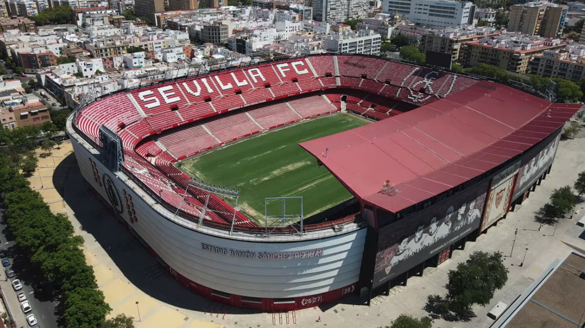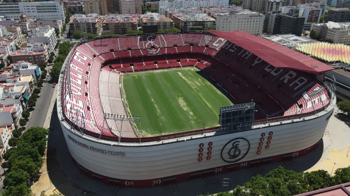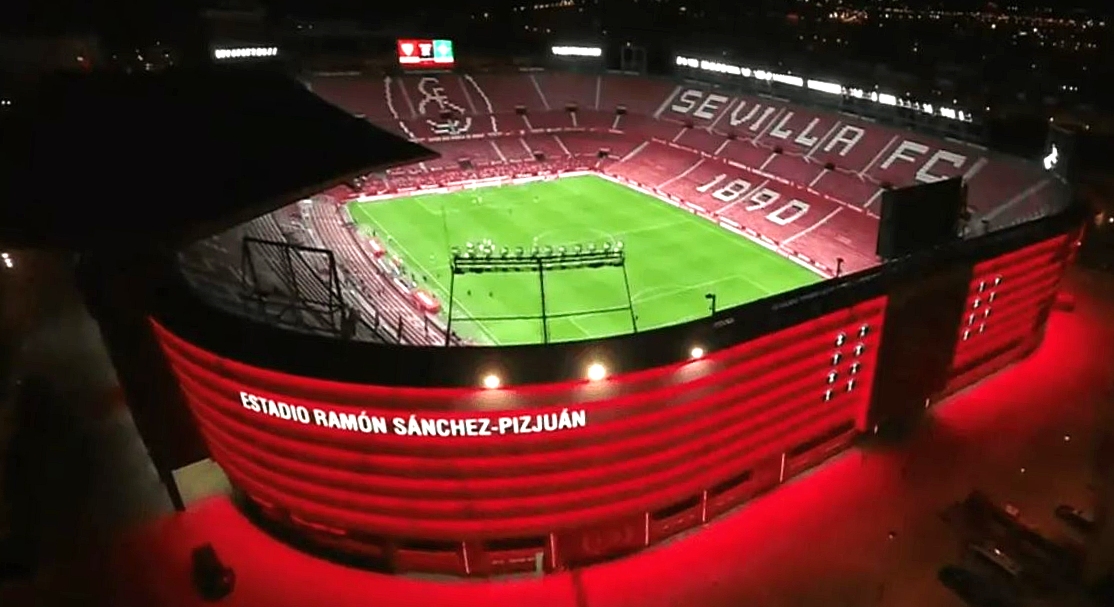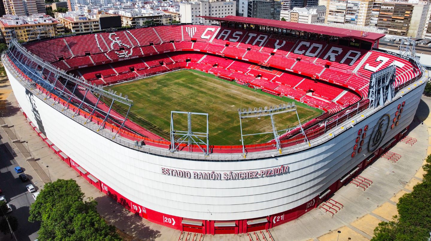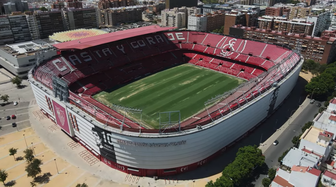 During the summer of 2015, Sevilla decided that their home needed major refurbishment. All 43,000 seats were replaced and the new seats formed the club insignia and slogans (as well as sponsor logos!). New media facilities, mixed zone, medical area & club store were also added in time for the start of the 2015-16 season. Phase two of the revamp saw the outside of the stadium clad in a mesh (as at Valencia’s Mestalla) that feature images of the club’s trophies, legends and a tribute to Antonio Puerta, the midfielder who passed away during a match at the Sánchez Pizjuán in 2007. In the summer of 2018, further changes were made to the lower tier, which saw some vomitories closed and another 950 seats added. In 2022, the stadium hosted the Europa League Final between Eintracht Frankfurt & Rangers.