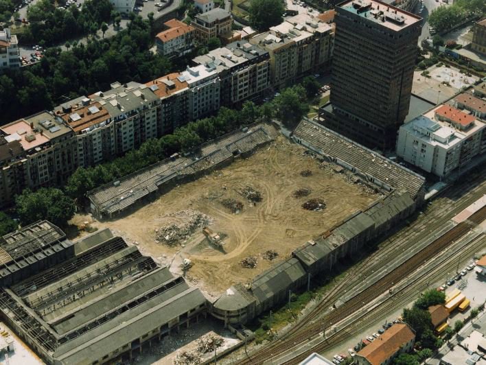 But La Real’s fans didn’t care, particularly when the team won back-to-back titles in 1981 and 1982, followed by a Copa del Rey win in 1987. The title win in 1981 was won in dramatic circumstances, with practically the last kick of the season, when Jesús María Zamora scored from the edge of the penalty area to secure a point against Sporting Gijón at a rain-drenched Estadio El Molinón. This success, however, would prove to be Atotxa’s undoing. With no space to develop and better facilities for players, officials and fans a must, Real Sociedad played their final match at the stadium on 22 June 1993 (vs an Euskadi XI), before moving to the south of the city and Anoeta. The stadium lingered on for a few more years before being finally demolished in 1999. The site is now occupied by housing, and the new Palacio de Justicia stands on the site of the old fruit market.