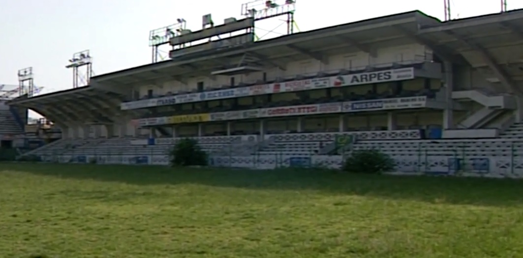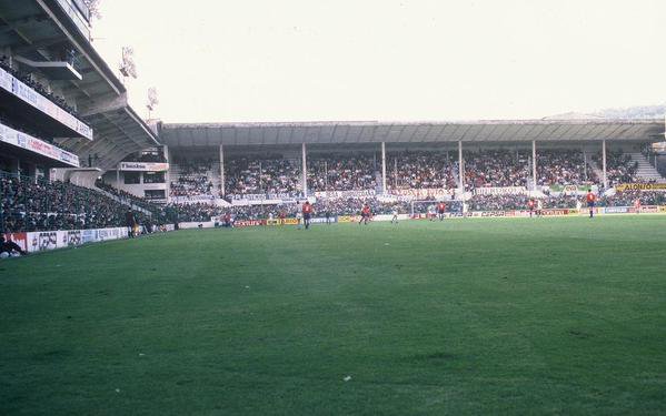 As years passed, however, Atotxa lagged far behind the stadium developments found elsewhere in Spain, and by the time of the 1982 World Cup, it was understandably overlooked as a host. Simon Inglis, in his book The Football Grounds of Europe, was well aware of Atotxa’s inadequacies, but loved it all the same. He described the stadium thus… “Holding 27,400, the ground is an intimidating hothouse for visitors, covered on all four sides (each with a different style of roof) and barely a metre between its touchlines and perimeter fence. The white north stand roof, apparently concrete, is actually lath and plaster, and the general facilities are basic, to say the least.”