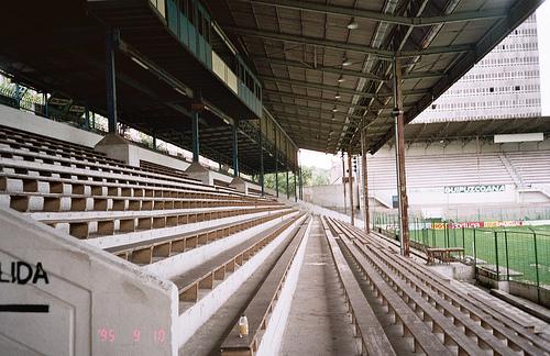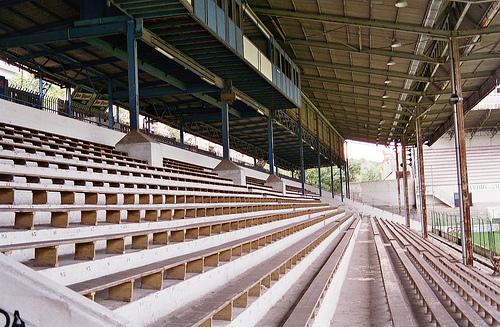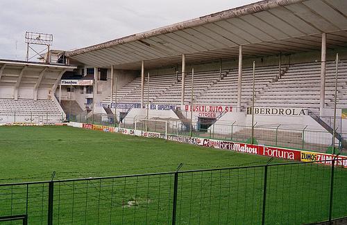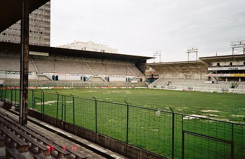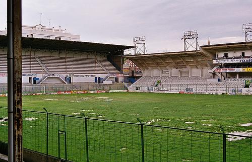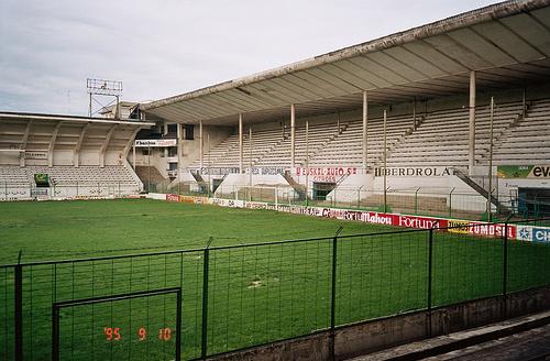 In its early days, Atotxa featured a very ornate main stand. Unusually for a wooden construction of this era, it was twin-decked and ran the length of the pitch. Opposite the main stand stood a large open bank of terracing, whilst either end of the ground featured thin strips of bleachers. It then began to develop in a rather piecemeal fashion as terraces were extended and thin, assorted covers were added. After the club won promotion to La Primera in 1949, the main stand was replaced with a curious structure that had a central section of three narrow tiers of seats, including the Presidential Box. Either side of this central portion stood larger banks of seats under a curved cantilevered roof.