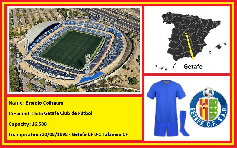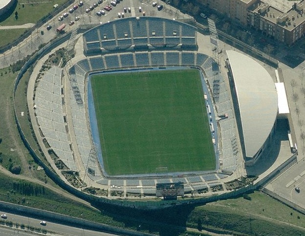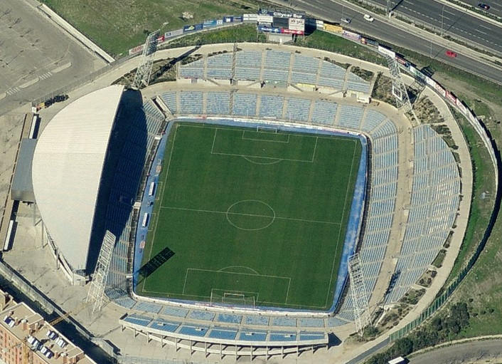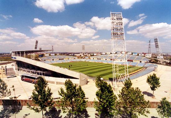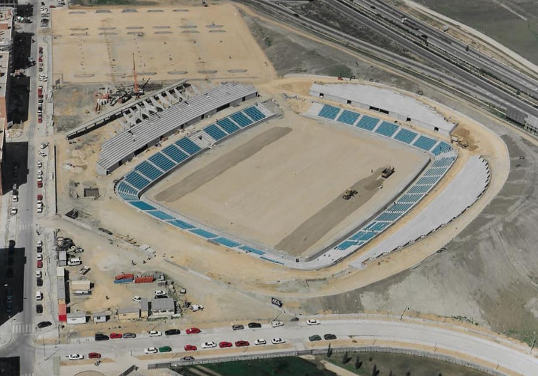 On 30 August 1998, Getafe CF played its first match at the Coliseum Alfonso Pérez, losing 0-1 to Talavera in the first Segunda B match of the season. The choice of Alfonso Pérez to bear the name of its new stadium says as much about the relatively lowly standing of Getafe CF as it does about the town of Getafe’s most famous son. Although born in Getafe, Pérez never played for his hometown club or at the stadium, gaining fame at Real Madrid and Real Betis, and earning 38 international caps. Whilst “Coliseum” might be stretching it a bit, the stadium was a huge improvement on the cramped Las Margaritas. It featured a lower tier of seating and three anfiteatros, one covered and two open on the east and north sides. The west side had a curious, flimsy cover that was 55 metres long and stood high above the upper tier, offering little in the way of cover. Despite that opening day setback, Getafe CF went on to dominate the league and the subsequent play-offs to earn promotion back to La Segunda. Once again, the club struggled, but once again, it received a reprieve. This time it was brought about by the demise of CP Merida and the demotion of Atlético Madrid B, following the first team’s relegation from La Primera. It would have taken a whole host of clubs to fold the following season to save Getafe CF from relegation, but alas, it wasn’t to be, and 21st place saw the club return to Segunda B.