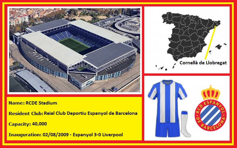 On 13 July 2009. the club took the “keys” to their new stadium and set about moving in. Six days later, a load test was conducted when a team of Espanyol veterans played the local club side and soon-to-be neighbours, UE Cornellá in the stadium’s first unofficial match. UE Cornella would open their new stadium to the rear of the main Tribuna in August 2012. The first official match was held on 2 August 2009, when Liverpool was beaten 3-0 with Luis Garcia having the honour of scoring the first goal.
