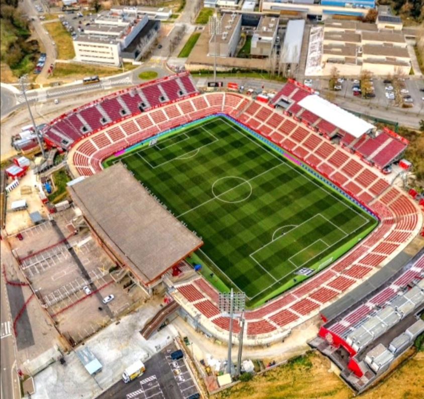 After two seasons in La Primera, Girona was relegated to the second tier. The club recorded two fifth place finishes in 2019-20 & 20-21, but suffered the agony of play-off final defeats to Elche & Rayo Vallecano respectively. Thankfully it was third time lucking for Girona, as in 2021-22 they defeated Tenerife in the play-off final and returned to the the top flight. Upon its return, Girona equalled its best finish in La Primera of 10th, before a remarkable 2023-24 season saw the club finish third and qualify for the UEFA Champions League. Whilst the team’s incredible feat was met with unbridled joy, it also presented the club with a sizeable headache. Whilst they could get by with temporary stands in La Liga, not only would UEFA ban the used of such stands in UCL, they would also not allow the use of the two rows of seating closest to the pitch. Faced with the choice of playing the most important matches in the club’s history in front of a reduced capacity, or switching matches to Barcelona and the Estadi Montjuic, the club stuck with Montilivi. Girona’s UCL matches at Montilivi will be played in front of a maximum attendance of 9,282 rather than the stadium’s regular 14,624 capacity.