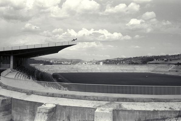 The Nuevo Estadio del Gerona Club de Fútbol as it was originally known, was typical of many builds of this era, as it featured a two-tiered concrete & steel stand with a 60 metre-long cantilevered roof. A single tier of terracing continued around the rest of the pitch. It is almost identical in style, if not size to the Nova Creu Alta that was built in Sabadell three years earlier. The stadium was officially opened on 14 August 1970 when nearly 25,000 attended a friendly against Barcelona. The change of stadium brought no immediate upturn in form and Gerona played on in the Tercera until they became a founder member of Segunda B at the start of the 1977-78 season. There followed a couple of decent seasons before the club dropped back to the Tercera. Worse was to follow when the club, now named Girona Fútbol Club, dropped to the Catalan Regional Preferente at the end of the 1981-82 season. Whilst the stay at this level lasted just the one season, the club was crippled financially and had little option but to sale the stadium to the municipality at the beginning of 1984.