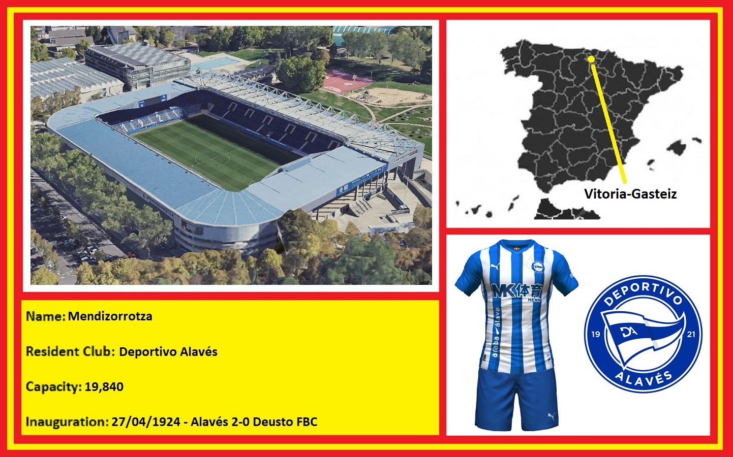 The club has played at its Mendizorrotza home for all but the very first three years of its existence. In those first few seasons, the club used a field on Camino de Lasarte. Then on 27 April 1924, they moved to the southwestern edge of town, where Vitoria’s first sports complex was being developed. This included a swimming pool, a Velodrome and an enclosed football ground. By the time of their top-flight debut, Mendizorrotza had a capacity of 8,000, with a short but rather ornate stand on the north side of the ground. The southern side of the ground was comprised of open terracing, but in 1935, an Art Deco-style radio tower was built above the terrace. Alavés were invited to compete in a restructured Segunda in the season immediately after the war, but finished bottom of Group II and dropped to the Tercera. Alavés bounced back immediately, and two campaigns in the second tier followed before the club endured an 8-season spell back in the Tercera. The club returned to La Segunda in the 1951-52 season and two seasons later won the regionalised second division title and with it, promotion back to La Primera. Back in La Primera, the club managed to remain in La Primera thanks to a last-day victory at Racing Santander, but the following 1955-56 season saw the club finish 14th and enter the relegation play-offs. In a mammoth 6-team tournament, Alavés finished bottom and dropped a division.