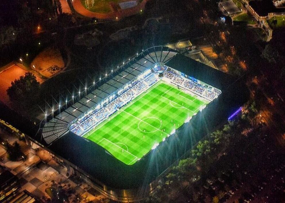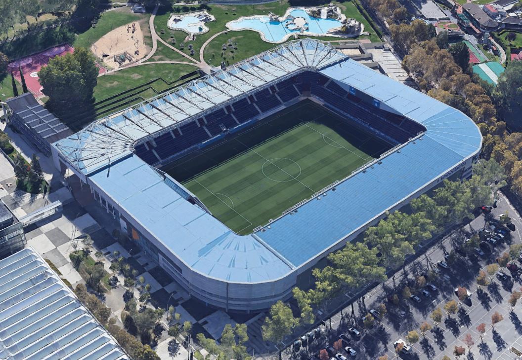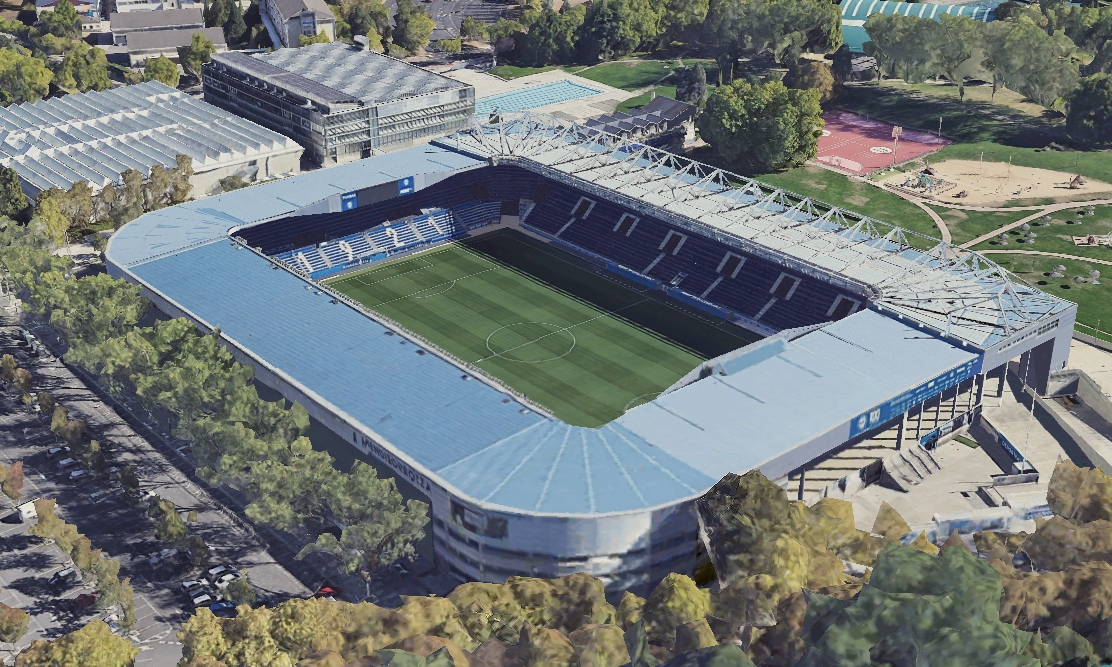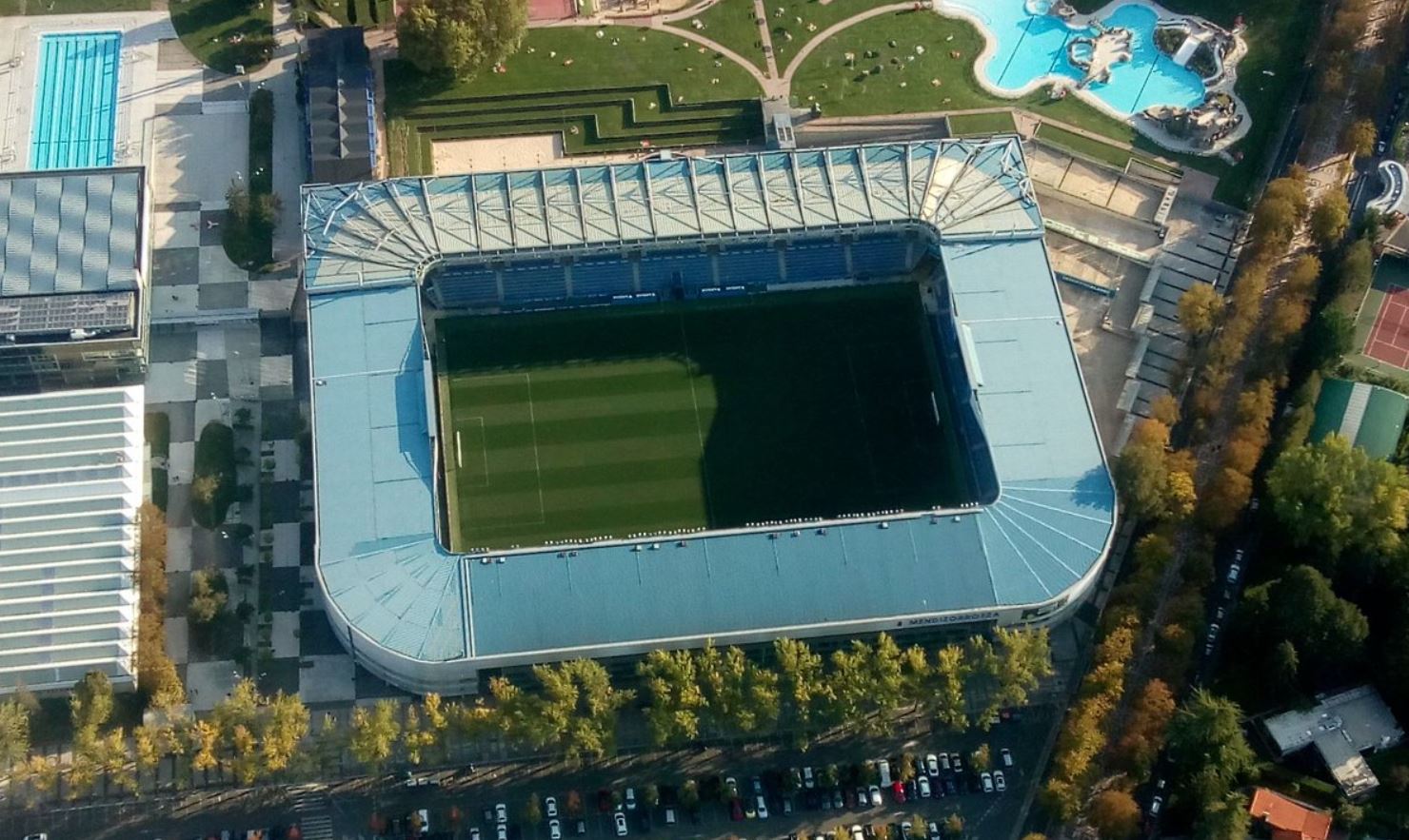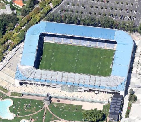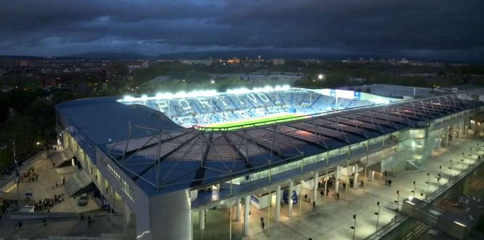 The work conducted at the turn of the century meant that Mendizorrotza did look distinctly out of place in Segunda B. Its 19,840 blue & white seats are all covered by roofs that date from this period. The newest stand of the stadium is the main southern Tribuna, which was erected in 2000 and houses the club offices and changing facilities. It has a large single-tier housed under a polycarbonate and steel cantilevered roof. The three remaining stands date from the early 1980s but were extensively refurbished following the club’s ascent to La Primera in 1998. The roofs are identical, propped post-and-beam constructions; however, the stands at either end of the stadium feature a video screen incorporated within the facias. The four stands are linked by cantilevered corner stands that were also added during this phase of refurbishment. Mendizorrotza has the feel of an English stadium, and maybe because of the colour scheme and the similar stands at either end of the ground, some Alavés fans have compared it to Tottenham Hotspur’s old White Hart Lane.