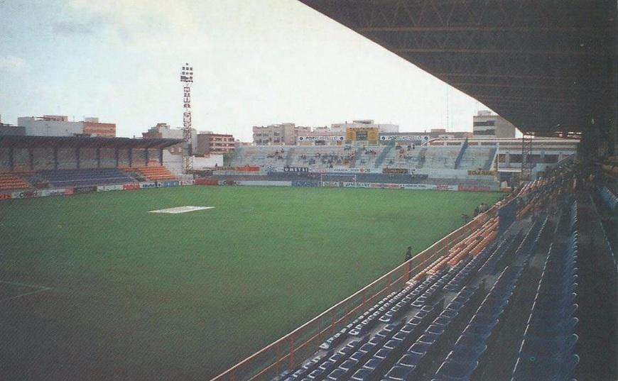 To get an understanding of what Villarreal CF was like before Roig appeared on the scene, you don’t have to go back that far. All that you see at El Madrigal has been built since 1998. Go back another ten years and El Madrigal was a presentable, but small stadium, perfectly acceptable for a club that had spent the vast majority of its history in the Tercera and regional leagues. El Madrigal was first extended during the summer of 1952 when the pitch was enlarged, and more substantial terracing was added. The 1960s saw a small covered stand erected along the northwestern side of the ground, and another tier was added to the southwestern end terrace in 1972 when Villarreal reached La Segunda for two seasons. Thanks to funds from the Municipality, floodlights were added and these were switched on for the first time for a match against SE Eivissa on 16 September 1973. In 1988 the small main stand was demolished, and a more substantial structure took its place. This full-length cantilevered stand was officially opened on 8 March 1988 with a friendly against Atlético Madrid.