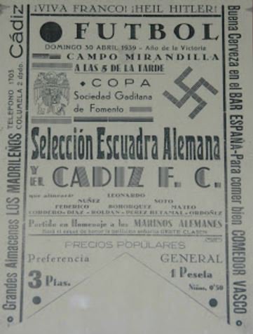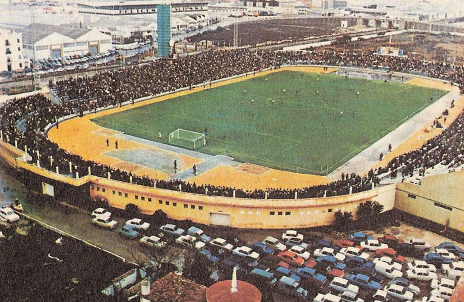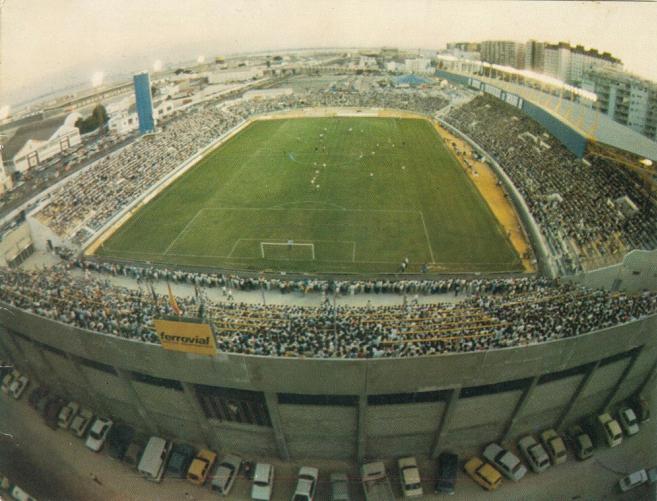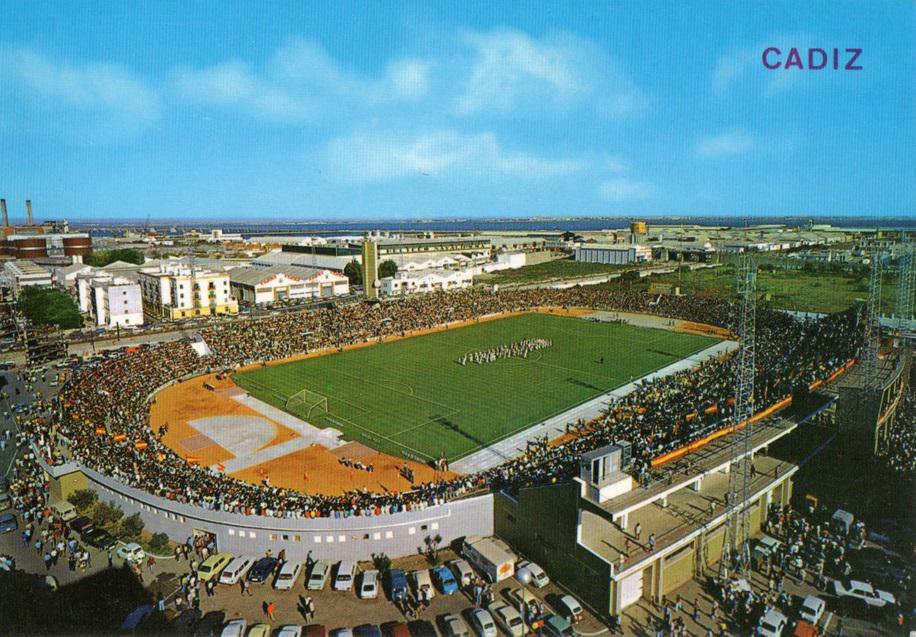 The Campo de Deportes Mirandilla opened on 27 August 1933 with a match against Real Betis. This basic ground served the club as the home for twenty-two years, during which time Cádiz Foot-ball Club , as they became known in 1936, gained promotion to La Segunda and in the first season following the Civil War, just missed out on promotion to La Primera. Normal service was resumed shortly afterward, as Cádiz CF slipped back into the Tercera in 1943. This square enclosure in the shadow of the city’s bullring had four narrow, open terraces, with the only cover being provided by canvas sheets stretched over the directors’ area. The ground was damaged following a massive explosion in the navy dockyards in August 1947 and whilst they played on at the ground for another 8 years, it prompted the club to look for a new home. The Campo de Deportes Mirandilla was given an emotional send-off when the club won promotion at the end of the 1954-55 season.