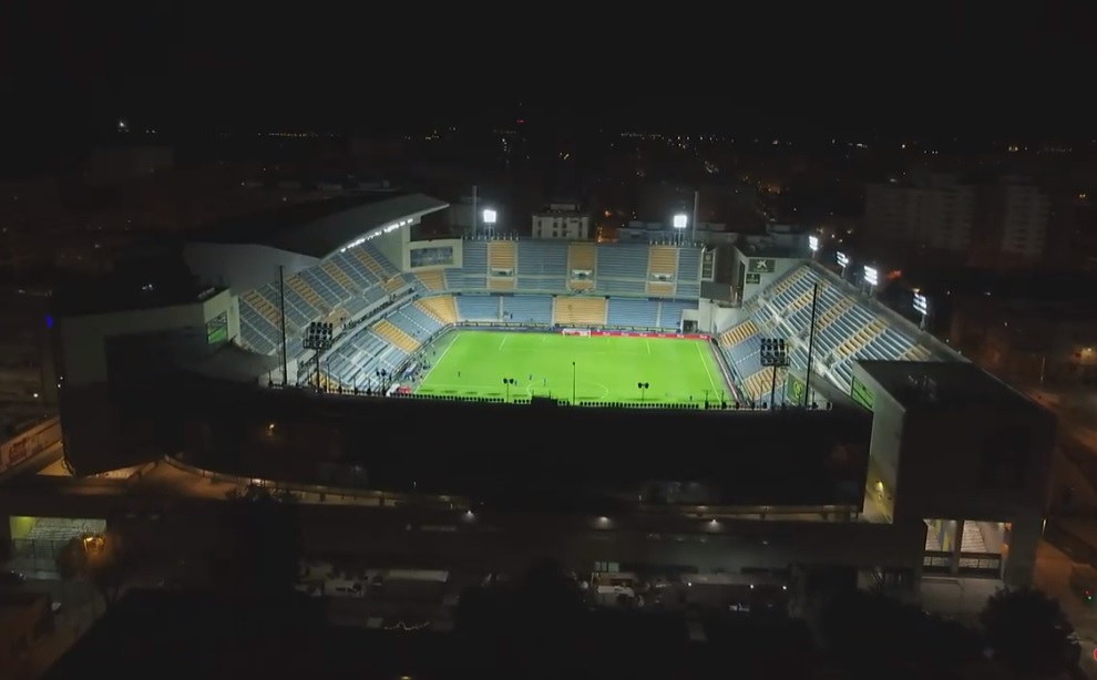 The remainder of the 1990s rarely saw Cádiz CF challenge the leaders, but the start of the new millennium brought new hope when the club won the Segunda B Group VI title, only to lose out to Gimnàstic de Tarragona in the playoffs. In February 2002 the club announced that the stadium would undergo a major rebuilding programme. The project was to be funded by private money, with a sizeable sum coming from the sale of commercial outlets within the body of the new stands. However, as the project neared completion, it was funds from the local municipality that helped complete the build. On 31 March 2003, work began on demolishing the south fondo, with the east preferencia and Olympic tower following in the summer. In their place rose two twin-decked open stands, with broad bands of yellow and blue seats. The new stand on the east side was flanked by two corner towers that housed office space that overlooked the pitch. Delays in financing and construction meant that the new stands did not officially open until 3 August 2005. Just in time for Cádiz CF’s return to the Primera for the 2005-06 season. La Selección paid a visit to the lop-sided ground in November 2006 but lost 0-1 to Romania.
