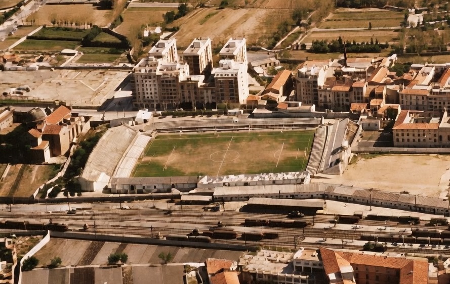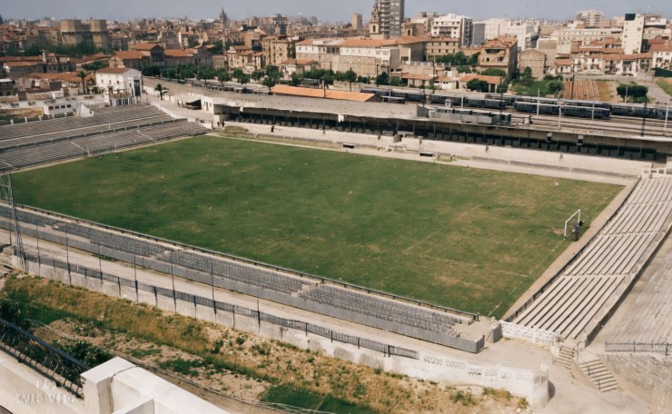 At its peak, the Campo de Vallejo had a capacity of 18,000, the majority of which were held on open terraces at either end of the enclosure. The only cover stood on the west side of the ground. Its low, pitched roof hung over eight rows of seats. An open paddock with more terracing stood in front of the stand. The site of the old Campo de Vallejo was sold for housing, and work started on a new stadium to the north of the city in 1968. Levante moved in with rivals Valencia for the 1968-69 season, but couldn’t escape the grips of the Tercera and was firmly entrenched in the third division when the new stadium opened on 9 September 1969 with a friendly against their cross-city rivals.
