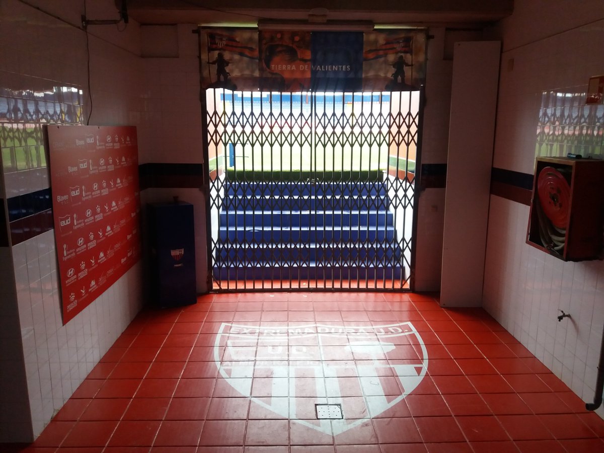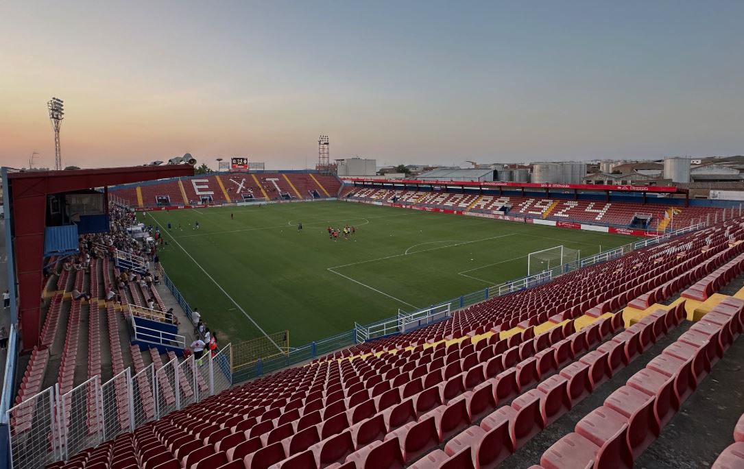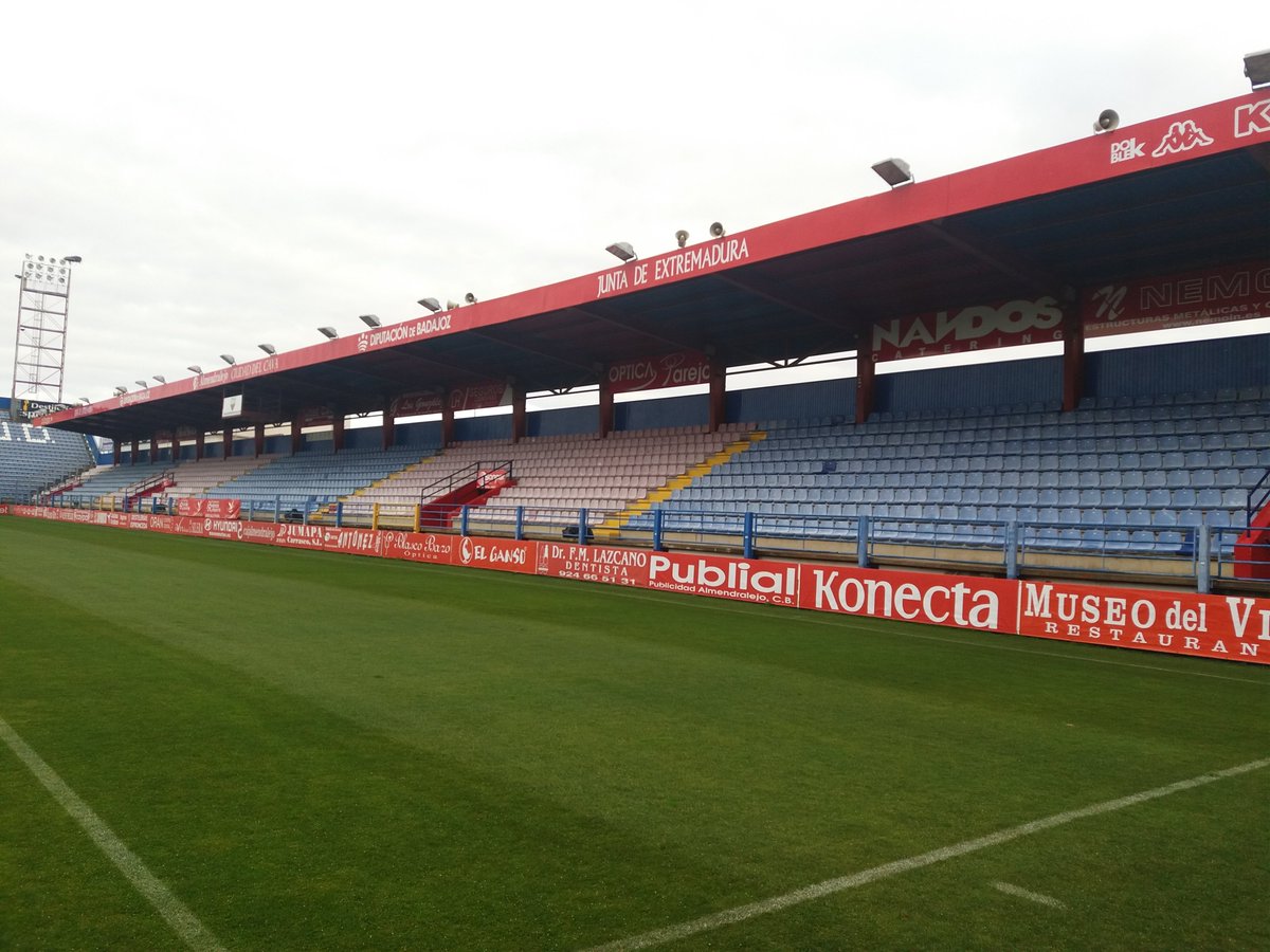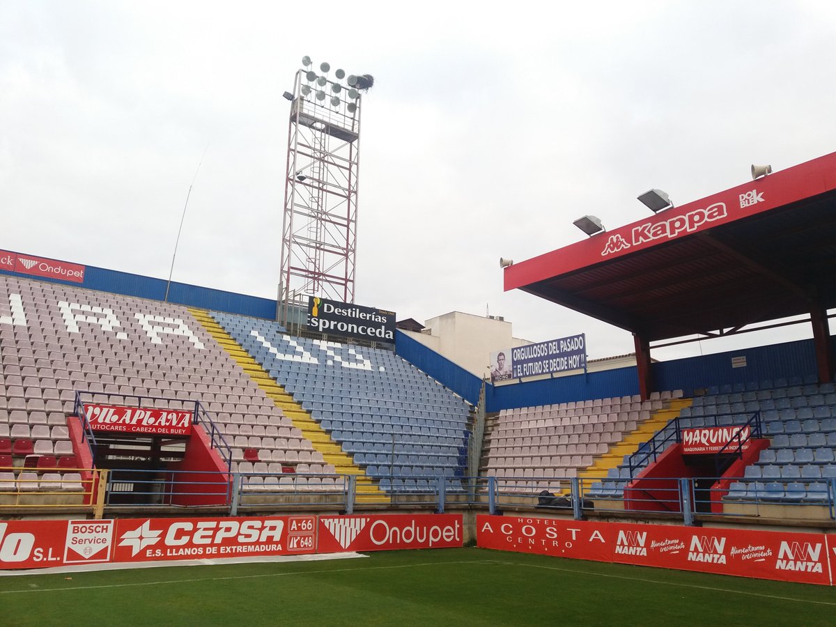 The Estadio Francisco de la Hera is essentially a small town stadium that got itself a rapid makeover. Tucked away to the west of the town, the streets around the stadium hug the stands, particularly the two covered sides. The main stand tapers away towards the east end, so much so that the back of the upper rows and press box overhangs the street below. As with the Estadio Romano José Fouto in Mérida, 20 miles to the north, the majority of the seating is behind both goals. The stadium has a seated capacity of 11,580, which was filled during the late 1990s, and again more recently when Extremadura UD won promotion to the second tier.