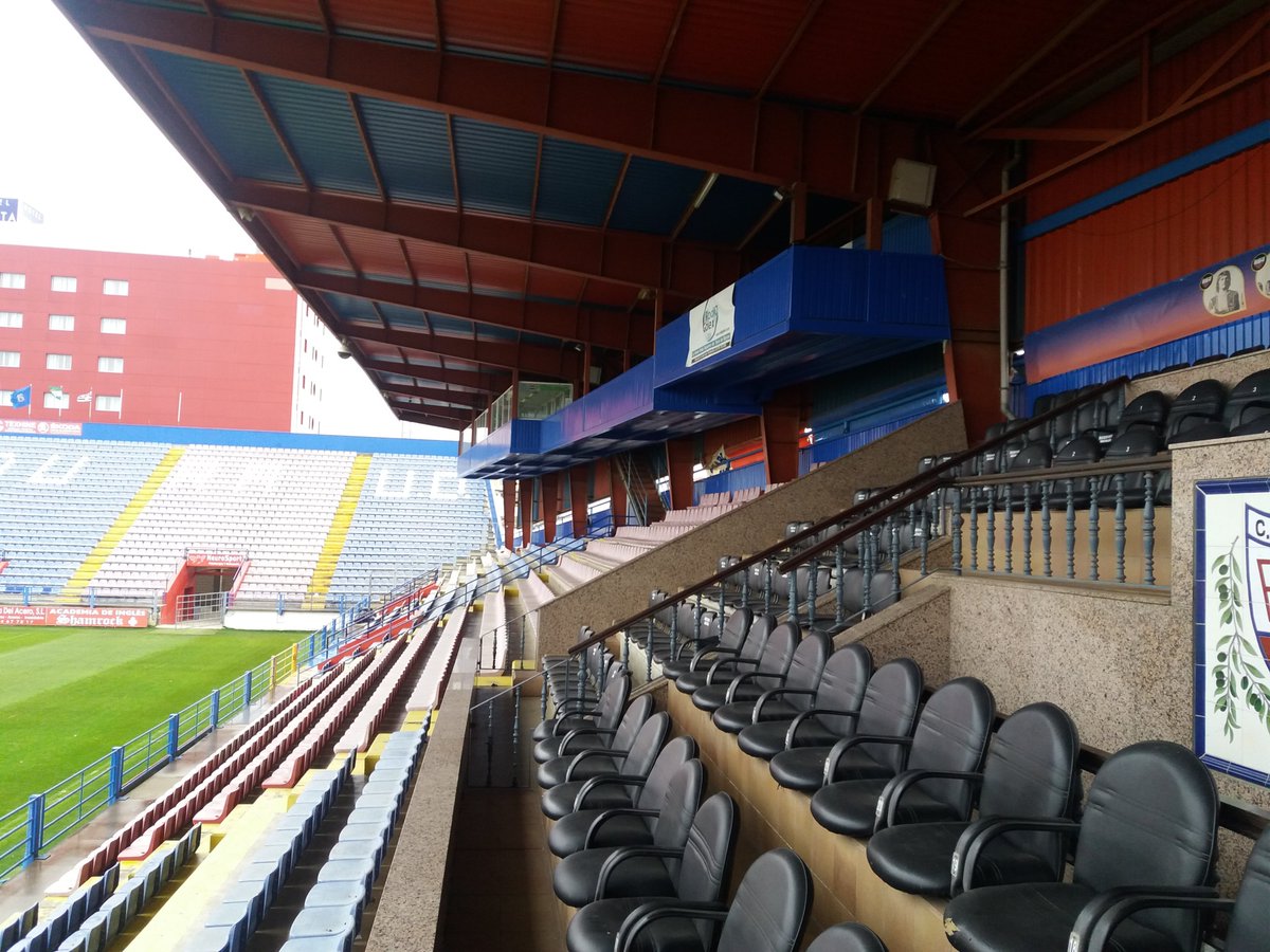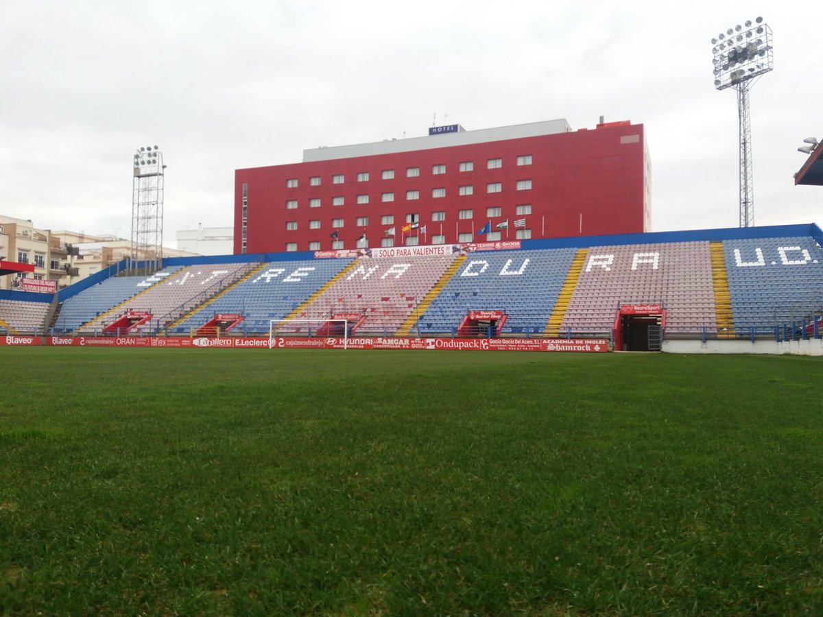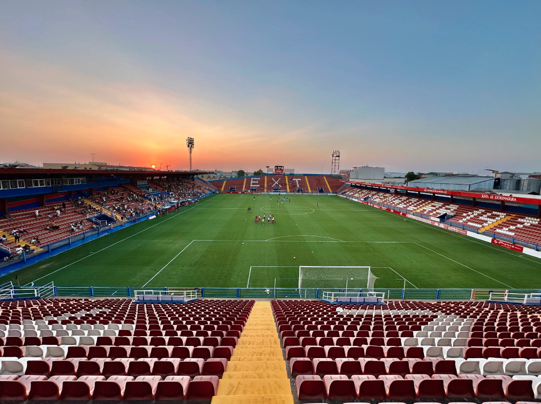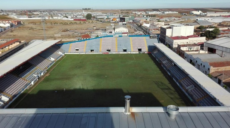 The Estadio Francisco de la Hera is essentially a small town stadium that got itself a rapid makeover. Tucked away to the west of the town, the streets around the stadium hug the stands, particularly the two covered sides. The main stand tapers away towards the east end, so much so that the back of the upper rows and press box overhangs the street below. As with the Estadio Romano José Fouto in Mérida, 20 miles to the north, the majority of the seating is behind both goals. The stadium has a seated capacity of 11,580, which was filled during the late 1990s, and again more recently when Extremadura UD won promotion to the second tier.