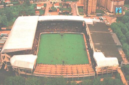 Despite the debacle of the West Germany v Austria match and its contrived result, the World Cup in Gijón was a success, with over 120,000 attending the three matches. Sporting meanwhile, continued to impress, albeit falling short of landing a trophy. Fourth place in the league was achieved in 1984/85 and again in 86/87, whilst the club regularly qualified for the UEFA Cup. The stadium was reduced in capacity from 45,000 to 38,000 in 1984, with the addition of seats to the east side and the Spanish national team played there in 1986 & 1990. The stadium was converted to an all-seat arena in 1997, resulting in an overall capacity of 25,885. Not that the capacity was being tested as Sporting were by now, beginning to struggle. It culminated in a calamitous season in 1997-98 when Sporting finished bottom of La Primera with a total of just 13 points.