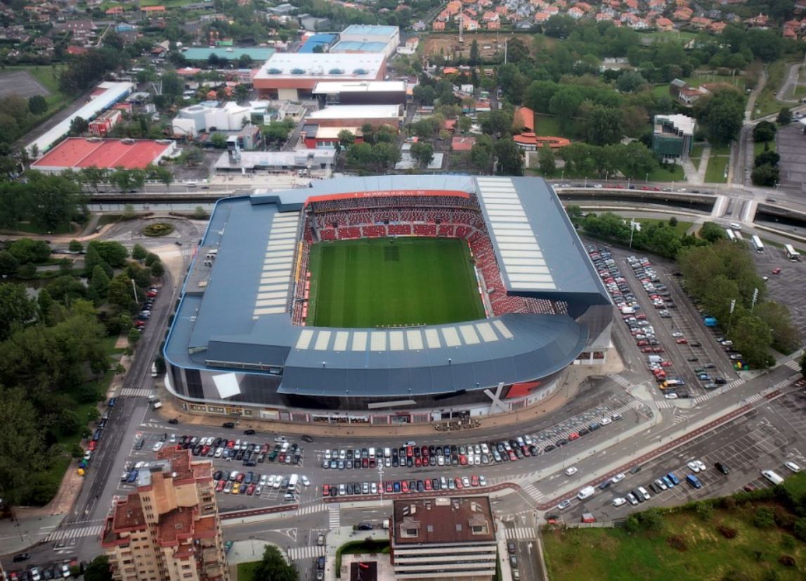 On 17 February 1929, Sporting had made its debut in the very first La Segunda championship, beating Real Betis 6-2 in the opening match. They went on to finish fourth in the inaugural season, but finished runners-up by a point to Deportivo Alavés in the following 1929-30 season. Disaster struck however on 27 September 1931, when the main grandstand was completely destroyed by fire following a friendly match with against Racing Santander. Sporting replaced the old grandstand with a taller, more ornate structure that ran the full length of the pitch, but this put a huge financial strain on the club and led to a default on the mortgage repayments in 1935. The situation was left in limbo due to the outbreak of the Civil War, but once the order was restored, the Municipality stepped in, purchasing the ground.