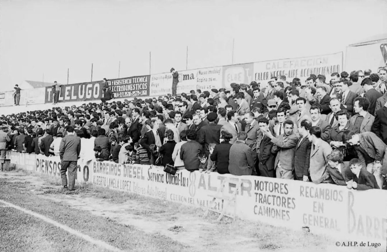 Following the demise of SG Lucense, the city’s other senior team, CD Polvorín, folded in 1953. Under the presidency of Emilio Núñez Torrón, a new club, Club Deportivo Lugo, was formed in June 1953. They conveniently took the place that CD Polvorin had vacated in the Tercera and played their home matches at the Campo de Los Miñones. Not a great deal happened over the next 20 years. There were a couple of close calls for promotion in the early sixties, and at the beginning of the decade, Los Miñones was renamed Campo de Angel Carro, in honour of the former director of the club and president of the local arts council. CD Lugo dropped to the regional preferente for the first and only time in 1972 but returned to the Tercera a year later to see out its final season at the old ground.