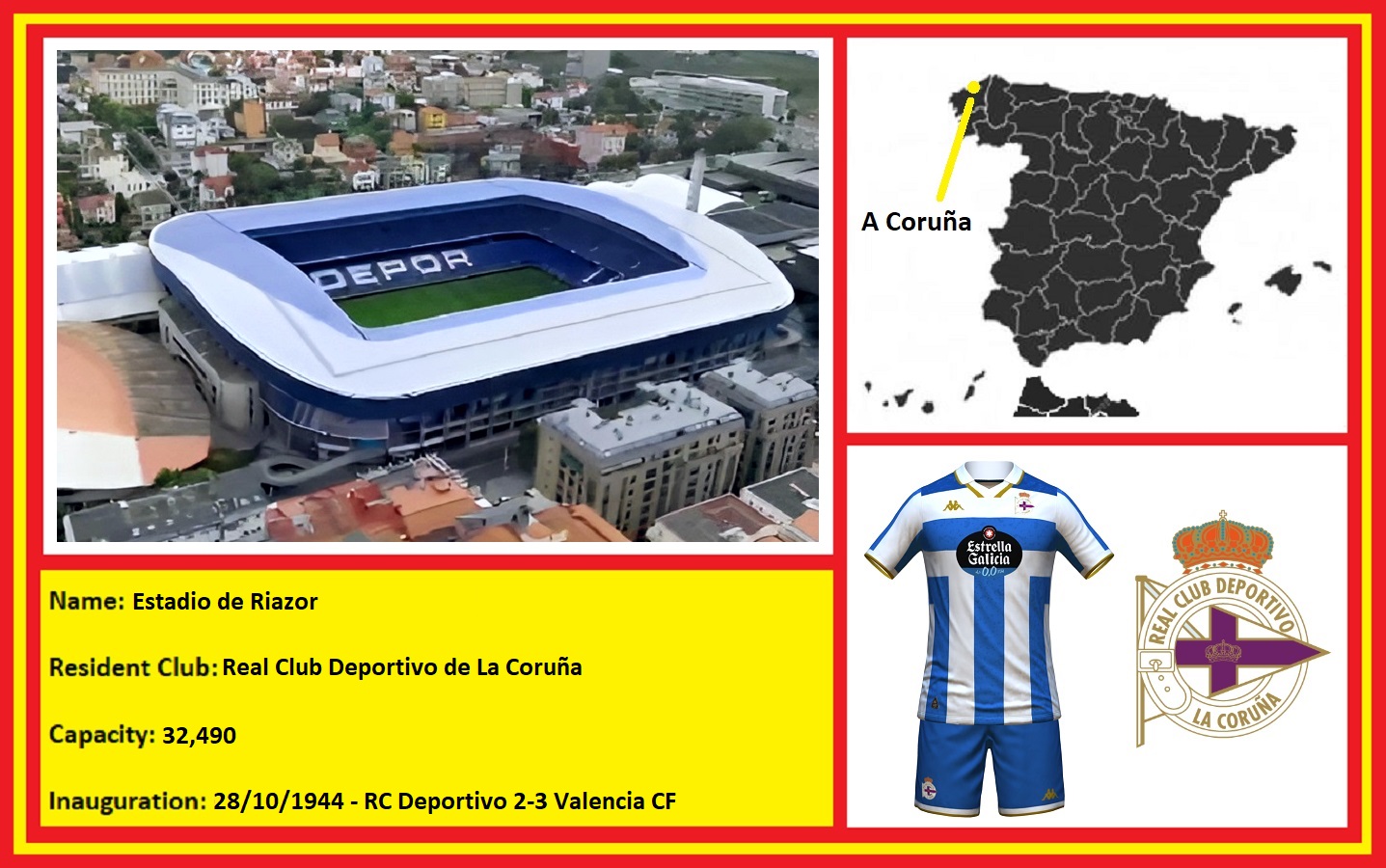 Depor started to compete at a national level in the 1928-29 season, when they were founder members of Segunda División A. Their early campaigns were modest at best, but in the first season following the Civil War, Depor won the Segunda División Grupo 1 title. There was no automatic promotion, and the club lost out to Real Murcia FC in the playoff group, then 1-0 to Celta Vigo in a relegation/promotion playoff. The following season, Depor finished second in Grupo A and faced Real Murcia in another relegation/promotion playoff. This time the Galicians prevailed, winning by 2-1 in a one-off match in Madrid. Promotion to the top flight highlighted the inadequacies of the Campo de Riazor, but it did host top-flight football for just over three seasons before time was called on the old ground. It staged its final match on 8 October 1944, when Depor drew 2-2 with Real Madrid.