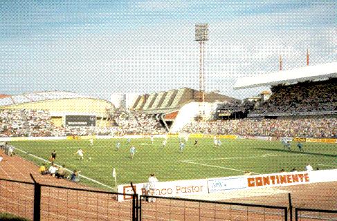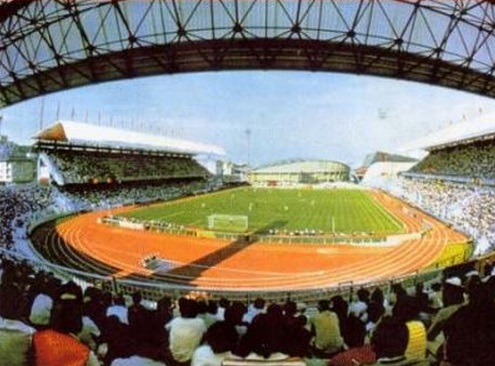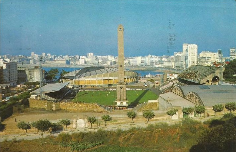 By the time of their second visit to Segunda B, work was already well underway, preparing the stadium for the 1982 World Cup. This required almost total reconstruction, and once again the municipality dipped into the public coffers and forked out over 80% of the 500 million pesetas bill. Two double-decker stands were erected on either side of the pitch, whilst in the northeast corner, a wedge-shaped open terrace was built between the main north Tribuna and the open eastern end. At the western end, two stands curved around the terrace, on either side of the Marathon tower. All four roofs were identical in design and reflected Coruña’s maritime past, with sail-like roofs supported by cables that were moored to concrete posts behind the stand. Simon Inglis likened them to mooring ropes in his book The Football Grounds of Europe. For the duration of the tournament, the east end was left open, but following Deportivo’s return to La Segunda, temporary stands were erected at the eastern end of the ground for league matches, giving it a new capacity of 29,000. The Riazor staged three matches in the 1982 World Cup, involving Cameroon, Peru & Poland. You can read more about España 82 in our section dedicated to the tournament. Just click here.