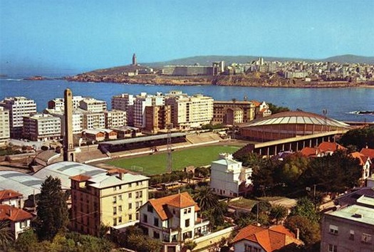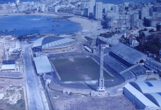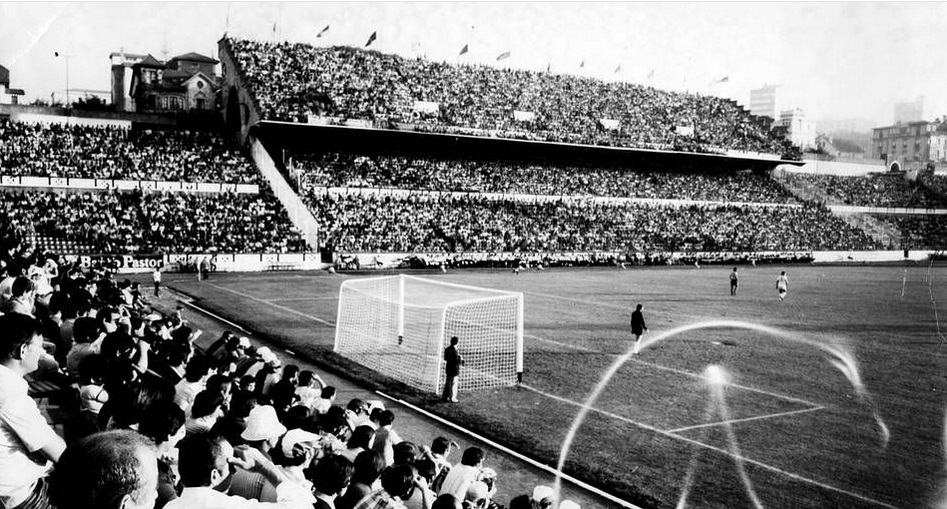 The stadium was used for an international when Spain played Portugal on 6 May 1945, a month that also saw Depor’s relegation to La Segunda. The final of the Copa del Generalísimo (Copa del Rey) paid its one and only visit to La Coruña in June 1947, when Real Madrid beat Espanyol 2-0 after extra time. The stadium remained unaltered for the next 30 or so years, except for the demolition of the arches at the eastern end in 1968, to make way for the Palacio Deportes, the indoor sports arena that still stands today. At its peak, the Riazor had a maximum capacity of 45,000, but crowds of up to 60,000 were unofficially recorded.