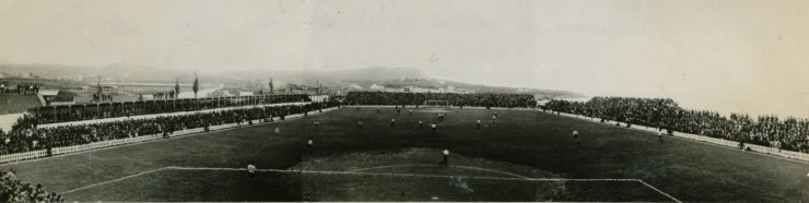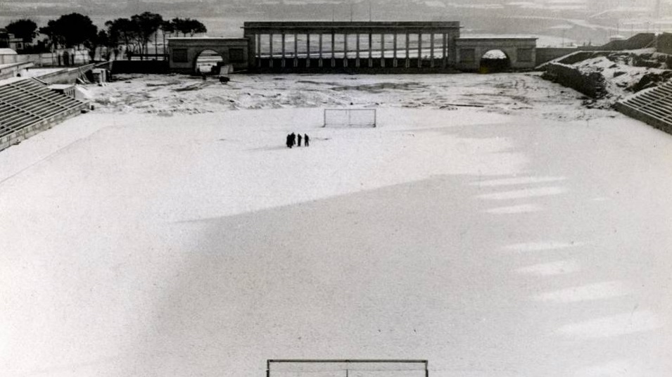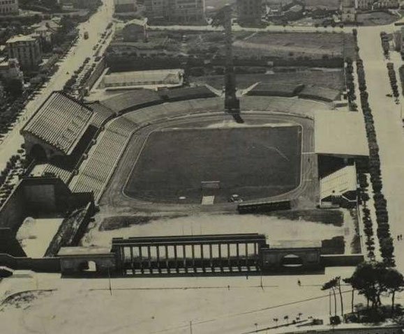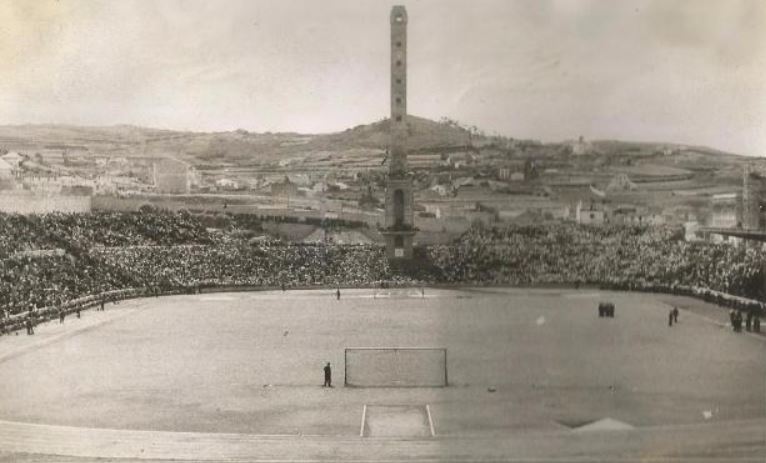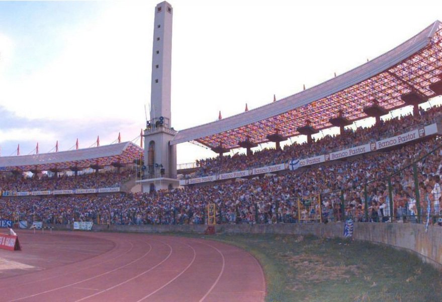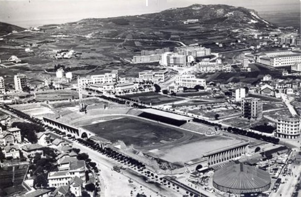 The Campo de Riazor made way for the Estadio de Riazor. This new stadium was built by the municipality 150 metres across the road from the old stadium at a cost of 5 million pesetas. Designed by architect Santiago Rey Pedreira and inspired by the German & Italian stadiums of the 1930s, it featured a low cantilevered stand on the northern side of the enclosure. At the west end was a semi-circular terrace that was built beneath the stadium’s prominent feature, a 45 metre-high marathon tower. The terracing continued around to the south side, where an additional upper tier of terracing stood. At the eastern seaboard end, instead of terracing, stood a training pitch, the Anexo de Riazor, that would become the home of the reserve side from 1948 to 2003. On the eastern side of the pitch stood a row of arches, which provided some protection from the elements when standing on the steps below. An athletics track surrounded the pitch, and Riazor was to become one of the leading venues for athletics on the Iberian Peninsula. Officially opened on 28 October 1944, Depor had to wait 24 hours before playing their first match at the new ground, a 2-3 defeat to Valencia.