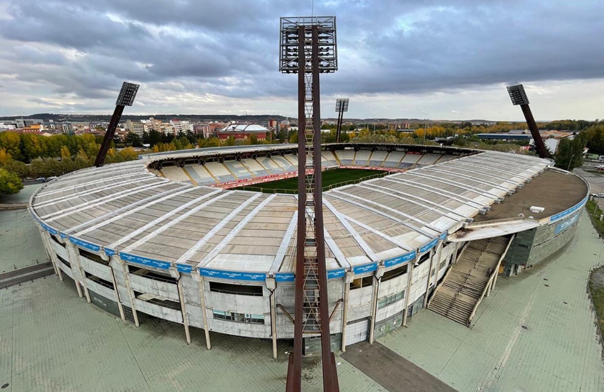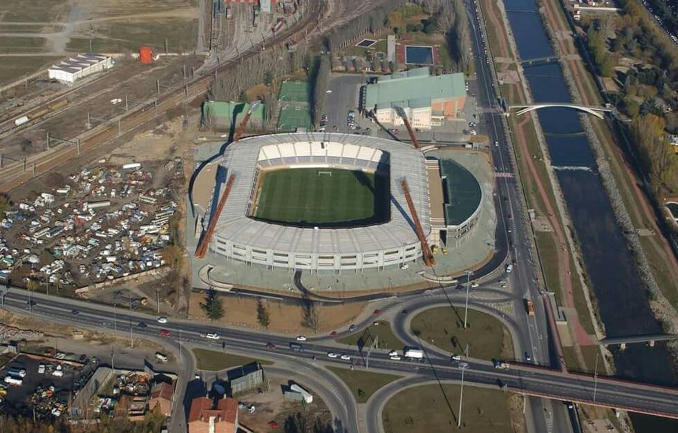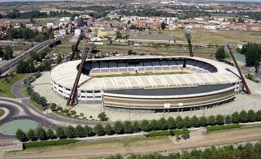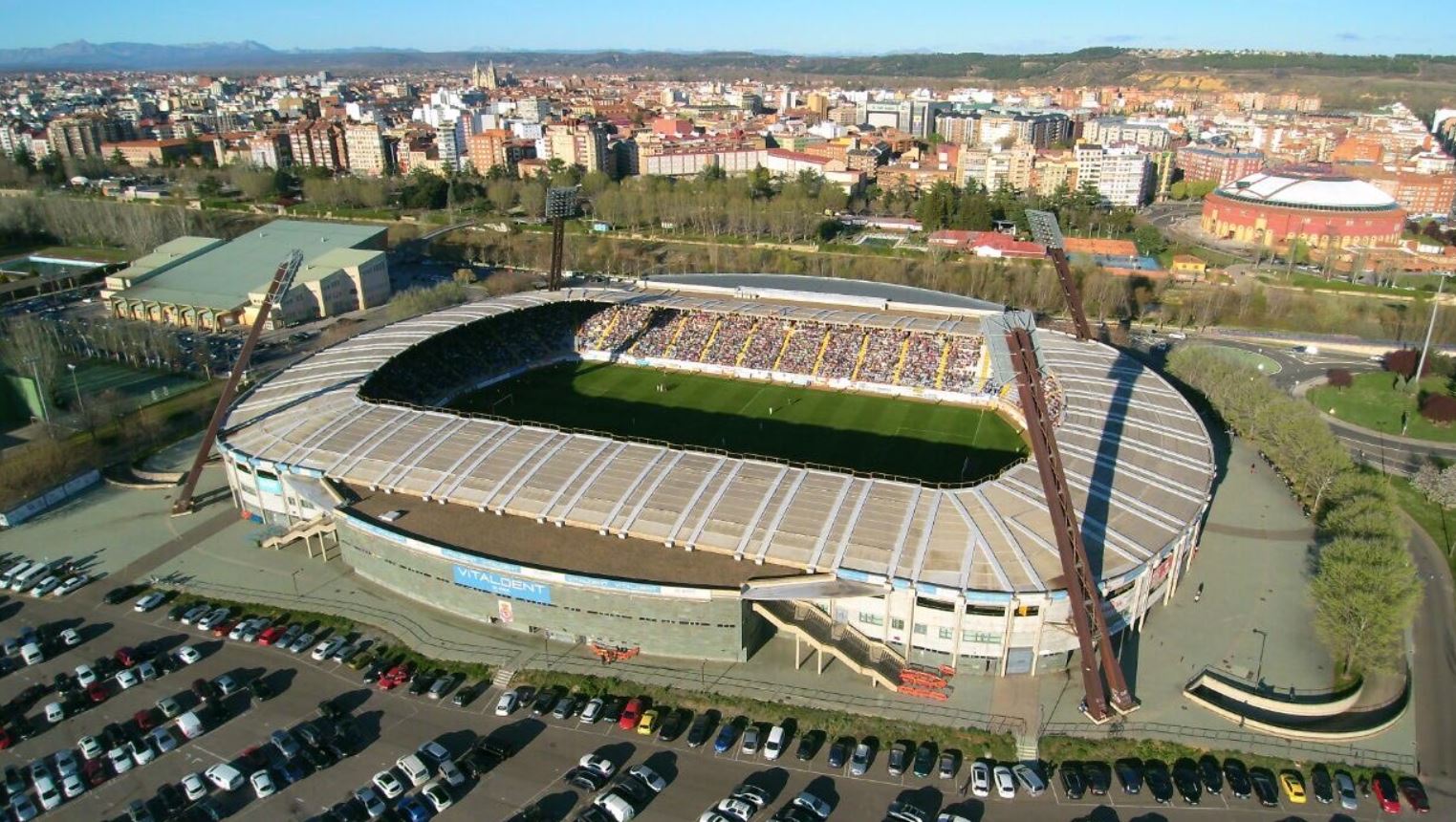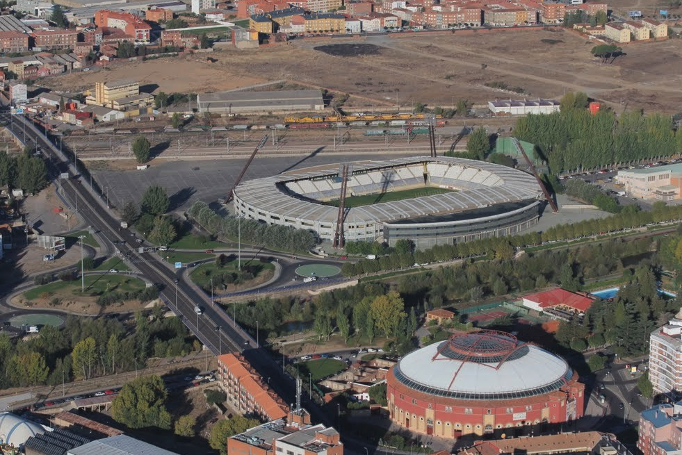 Cultural had already moved out of their home since 1955, La Puentecilla when work started on the municipally-owned stadium in 1999. The aim was to deliver a modern stadium and indoor sports facilities at a cost of €10.8 million. As time progressed, the project slipped over the budget, and by the time the final expense had been calculated in 2002, the sum had risen to €18.6 million. In September 2008, the stadium was renamed Estadio Reino de León (Kingdom of León Stadium). It is one of the more stylish medium-sized stadiums built in Spain in the past 25 years. Similar in design to A Malata in Ferrol, it has a capacity of 13,451, all contained in a single sweep of blue and white seats. The front row of seating is 2 metres above pitch level, whilst the ends of the stadium curve behind each goal mouth.