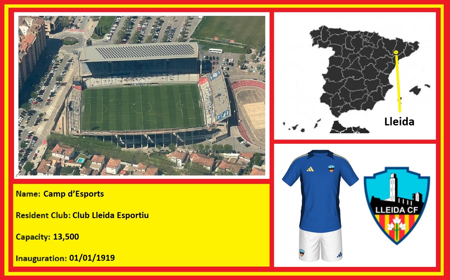 Over the years, the senior football clubs of Lleida have experienced many trials and tribulations, but there has remained one constant throughout their ups and downs: the Camp d’Esports. Built as a gift to the city by the local Republican Movement, it opened on 1 January 1919 and has remained at the centre of all things football in Catalunya’s most northern region.