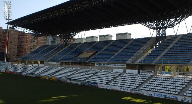 Coach “Mané” had a seven-year period in charge of UE Lleida, the highlight of which was a second division title and promotion back to the top flight in 1992-93. During the summer of 1993, the club & municipality embarked on an ambitious plan to rebuild the ageing stadium. Under the guidance of architect Robert Brufau, the western grandstand and eastern terrace were replaced with twin-decked seated stands. Using prefabricated sections, the new layout quickly took shape. To the west, with an impressive roof, was a new grandstand and to the east was a stylish, curved anfiteatro. Whilst the 93-94 season was a lot less traumatic than the club’s previous venture in La Primera, it still ended in relegation, despite wins over Real Madrid at home and Barcelona in the Camp Nou. During the summer of 1994, the northern terrace was replaced with a twin-decked open stand and the southern end was converted to seating. The club came desperately close to an immediate return to La Primera but lost 4-5 on aggregate to Sporting Gijón in the end-of-season playoffs. The remainder of the 1990s was spent in the top half of La Segunda, but by the end of the 2000-01 season, UE Lleida had overstretched its resources and deep in debt, they plunged into Segunda B.