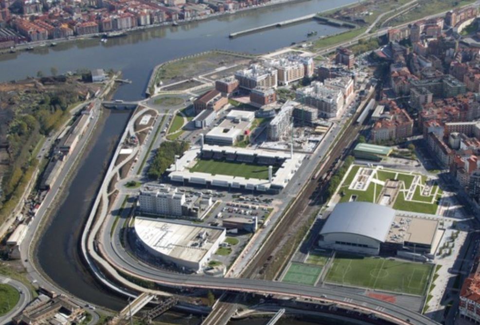For three years, whilst the whole area surrounding the old stadium was redeveloped, Barakaldo CF played at the Campo de San Vicente, a small municipal athletics stadium around half a mile south-west of the Lasesarre area. The new stadium was built by a development company, Ria Bilbao 2000, who reached an agreement with the local municipality to build the stadium in return for 15,000 m2 of land, which could be developed for residential use. The cost of the 7,960-seat stadium came in at 866m pesetas or around 5.1m euros. On 30 September 2003, the new Campo de Lasesarre opened its doors with a friendly against cross-city giants, Athletic Club.