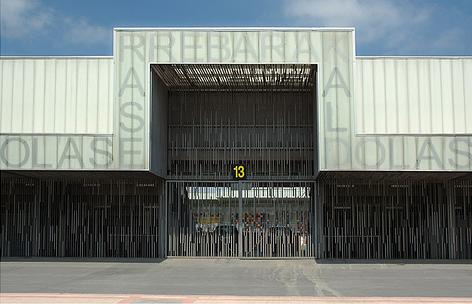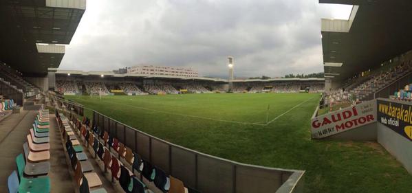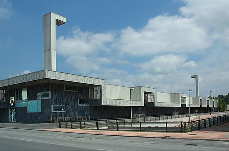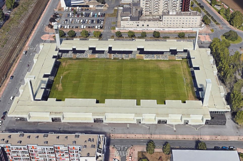On the bank of the Rio Galindo, just a few miles north west of central Bilbao, sits the distinctive home of Barakaldo Club de Futbol. The new Campo de Lasesarre opened in 2003 and occupies a site some 100 metres from the club’s old Lasesarre ground, which they vacated in 2000.