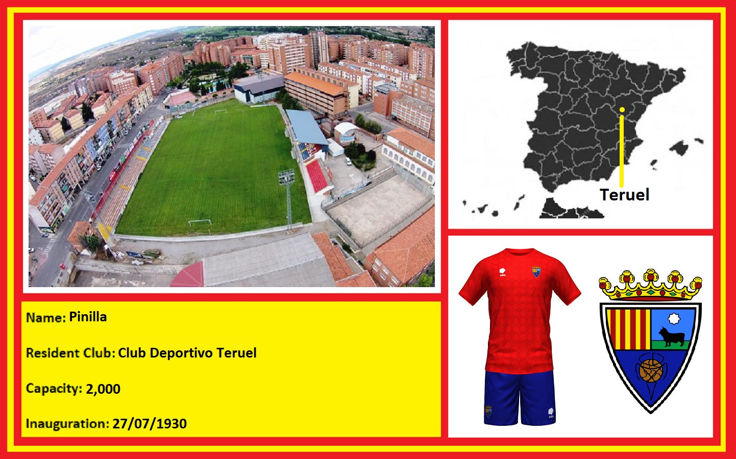 Pinilla has been the principal location for senior football in Teruel since 1930. It was originally called the Campo de El Ensanche, or colloquially called La Viaducto. The enclosure was developed and reinaugurated on 8 September 1957 when CD Teruel played Osasuna in a friendly, before taking on the name of Pinilla in 1964. In 1969, the club was relegated to the regional leagues, and they would stay there until 1984. During their time in the regional league, Pinilla was renamed the Campo Municipal Adolfo Masiá, before returning to Pinilla in 1987, when the club won promotion to Segunda B for the first time. The high point of their four-season stay was a fourth-place finish in the 1988-89 season, but two years later the club was relegated following a calamitous season that saw only five wins. There followed 20 consecutive seasons in the Tercera before a second Tercera title was won in 2009-10 and promotion to Segunda B was secured when SD Noja were disposed of in the play-offs. CD Teruel’s stay in Segunda B ended after three seasons with relegation back to the Tercera in June 2013.