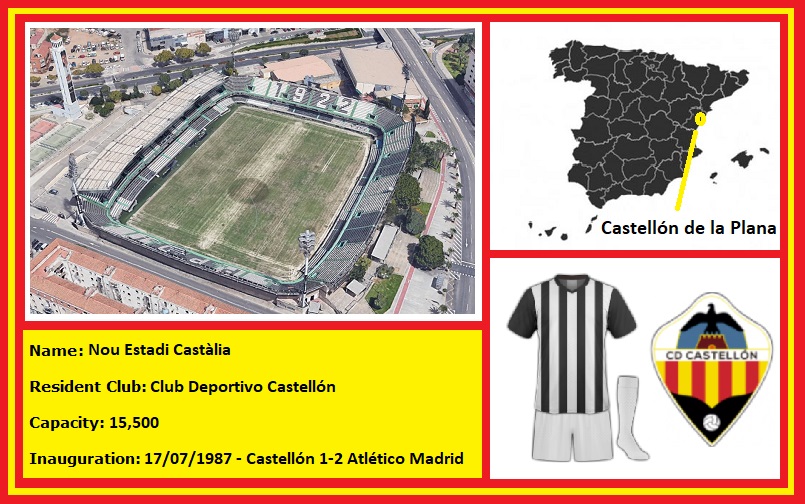 On face value, the Nou Estadi Castalia looks unchanged from when it first opened. It has however undergone a few, subtle changes. In January 1988 the seats behind the goals were removed in advance of a Copa del Rey tie with Barcelona. This raised the capacity to 17,000. Upon promotion back to the La Primera in 1989, two rows of seats were added to the rear of the stands behind the goal and the east Preferencia, adding another 1,000 to the capacity. The terracing behind the goals were re-seated in 1996, giving the stadium a all-seated capacity of 15,500. In 2019, a section of the upper tier of the southern Gol Sud had to be replaced due to structural faults. At the same time, the outside of the stadium has wasbeen spruced up, as has the magnificent marathon tower, although it is no longer the focal point it once was and now detached from the stadium, some 40 metres behind the main stand.