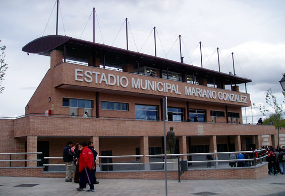 I have to say that the Estadio Municipal Mariano González is one of the quirkiest small stadiums in Spain. Constructed in 2005 on the site of the club’s existing home, it was originally called the Campo Colonia Covadonga or simply the Campo de Deportes when it opened in 1960. The land had been donated to the council by its owner, Mariano González, and featured a low cover that ran the full length of the western side, with a small, seated central section. There was a clubhouse and changing facilities at the southern end, while the northern end and eastern side cut into the side of a hill and featured narrow terraces. Redeveloped at a cost of €5 million and with an all-seater capacity of 2,500, it was officially opened on 13 April 2005 with a friendly match against Atlético Madrid. The stadium has retained its original alignment, but the new synthetic pitch is now located a few metres to the south-east. This has allowed more room to develop the main stand, as well as the larger northern end, which features a bank of five rows of seats, cut into the side of the hill.