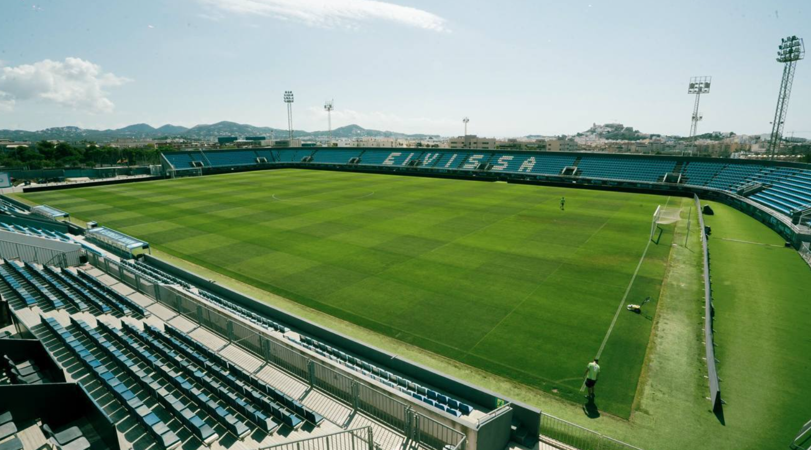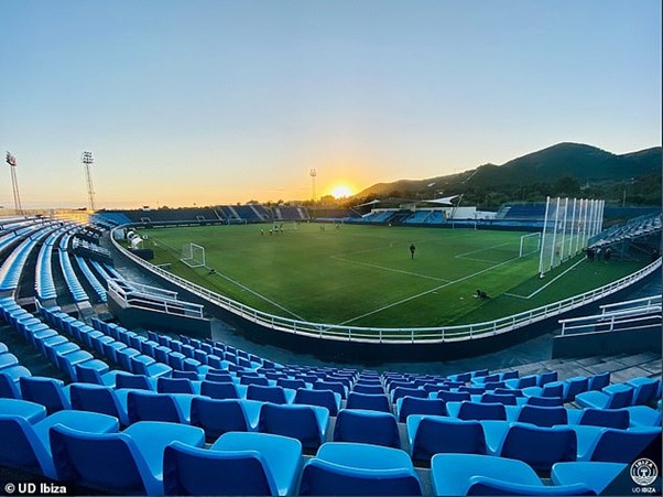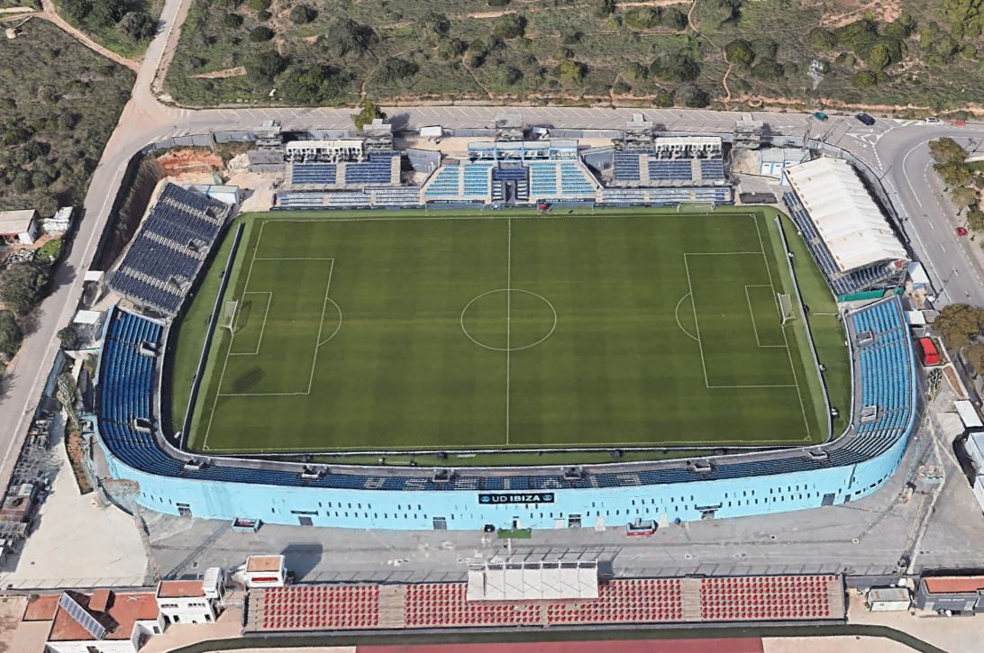 Under Salvo’s leadership, UD Ibiza (they dropped “Eivissa” in 2021) went from strength to strength. That first season in Segunda B saw a 6th placed finish, whilst the curtailed 2019-20 season saw the club finish runners-up in Group I of Segunda B. Due to the pandemic, the Play-offs were played over a single tie at a neutral venue. UD Ibiza fell at the first hurdle, losing 1-2 to UE Cornellá at the Ciudad de Málaga. Undeterred, UD Ibiza finished top of their sub-group in 2021 and overcame Real Madrid Castilla & UCAM Murcia in the play-offs to earn promotion to the second tier. With little option to play elsewhere, UD Ibiza signed an agreement with the local council for exclusive use of Can Misses. Under the deal, the club met the €2.3m bill to upgrade facilities to La Segunda standards. The artificial turf was replaced with a natural grass surface and the temporary stands installed in January 2020 for the club’s Copa del Rey tie with Barcelona were upgraded. The west stand’s changing and media facilities were also upgraded ahead of the 2021-22 season., taking the revised capacity to 6,200.