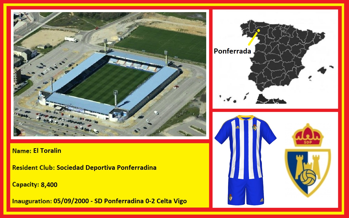 Now we know by now that Ponferradina can handle Segunda B, and so it proved to be the case during the 2011-12 season, with the club vying with Real Madrid Castilla for the top spot before settling for the runners-up position and the long route through the playoffs. Here they overcame the challenges of Real Jaén, Lucena and most impressively, CD Tenerife. The capacity was temporarily extended to 8,800 in December 2011 when Real Madrid vistited in the Copa del Rey. Back in La Segunda and Ponferradina acquitted itself rather well. None of the hanging around the relegation zone. No, the club recorded its best-ever finish of seventh in 2012-13 & again in 14-15, just missing out on the end-of-season playoffs. However, their four-season stay in La Segunda came to an end in June 2016. After a three-season sabbatical in Segunda B, Ponferradina returned to La Segunda in 2019, thanks to a second-place finish in the regular season and victories over UE Cornellá, Cartagena & Hércules in the playoffs. Back in the second tier, Ponferradina clocked up another 4-season-long stay before dropping to the Primera Federación in 2023.