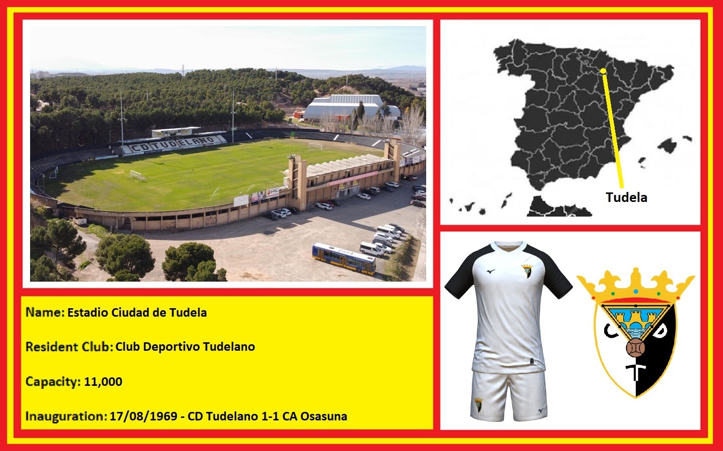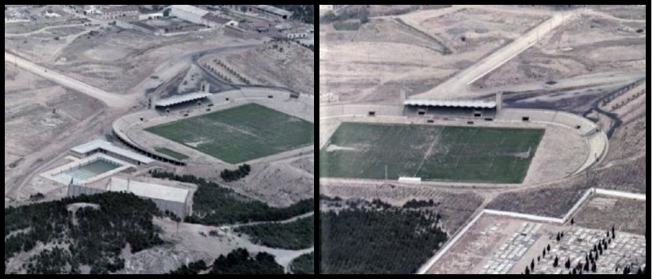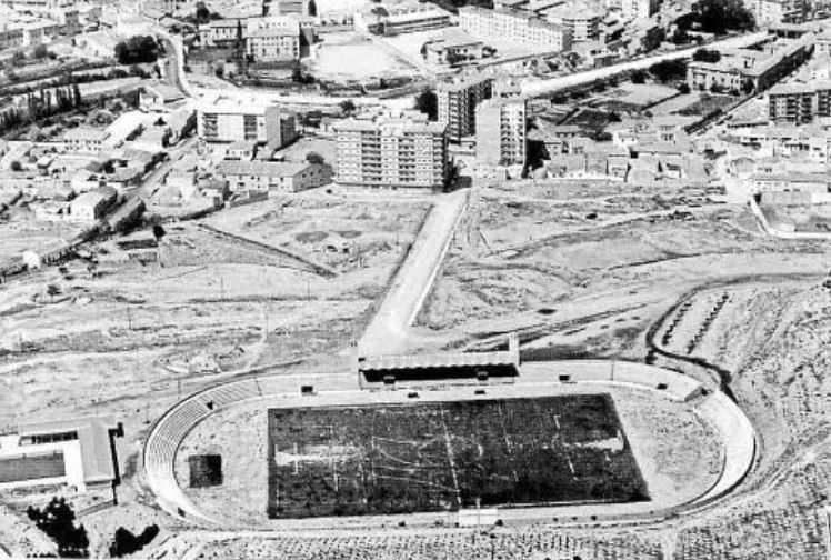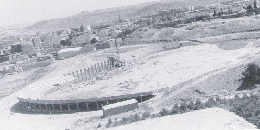 The new stadium was named after José Antonio Elola, the National Deputy of Physical Education and Sport. He had no obvious ties with Tudela, having been born in Argentina. However, he fought for the Nationalists in the Civil War with one of Tudelano’s main benefactors, General Julio Pérez Salas. The stadium was designed by Enrique Delso and had a budget of 14 million pesetas. It was inaugurated on 17 August 1969 with a friendly match against CA Osasuna. Tudelano opened the scoring in the second minute with a penalty from Maranhao, the club captain. Osasuna equalised in the second half, and the match finished one-all. The stadium was a huge improvement on the basic Campo de Griseras and was the centre-piece of the city’s sporting village, which also included a swimming pool and an indoor sports hall.