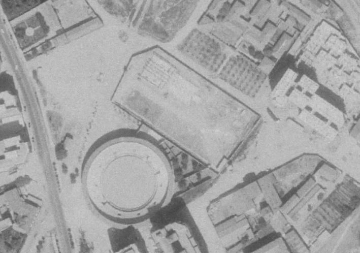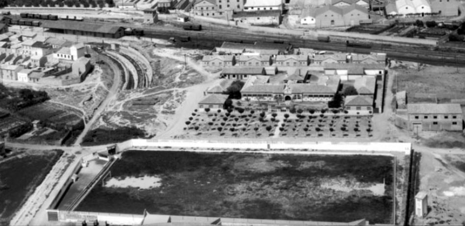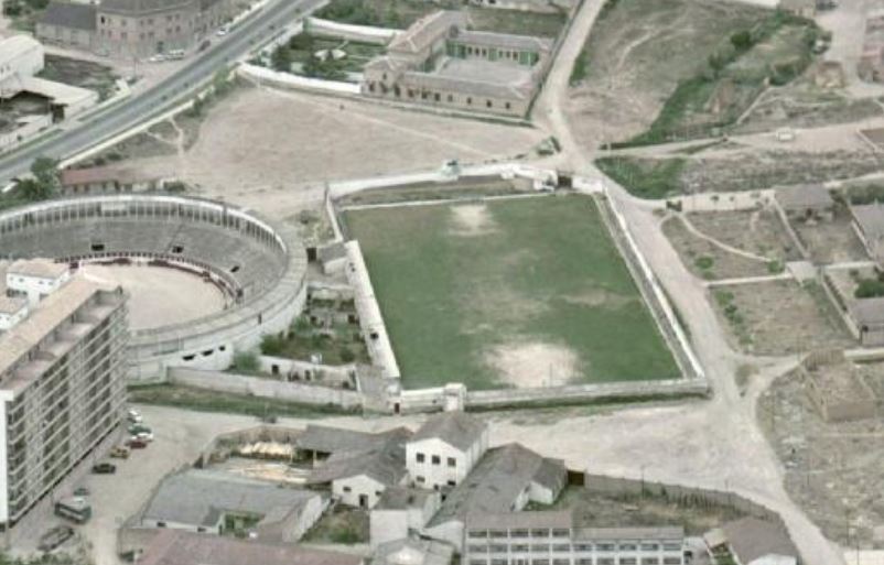 Tudela is the second-largest city in Navarra, but with a population of just 35,000, it’s not surprising that the senior club, Club Deportivo Tudelano, has returned relatively slim pickings. Formed in 1935 following the merger of Tudela CF, Arenas, Ancora Fordín, and the fantastically named CD Vegetarianaro, Tudelano played their first matches at Campo de Griseras. This was located to the south of the city centre, next to the Plaza del Toros and the city’s abattoir. The ground was originally owned by Azucarera de Tudela and became the principal football field in the city after its opening in 1921. Until Tudelano moved into the Campo de Griseras, teams had to change in the adjacent Plaza de Toros. However, with the local council now in charge of the field, Tudelano’s lease included the instruction to build changing rooms. Tudalano stayed at the somewhat spartan Campo de Griseras until 1969, when they moved to the southwest of Tudela and the purpose-built Estadio José Antonio Elola. The Campo de Griseras remained a municipal football field until 1977, when a primary school was built on the site.