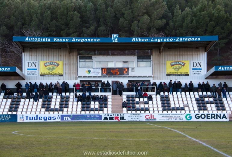 The club next won promotion to Segunda B in 1990-91, and this time it was on merit after winning their section of the Tercera, and topping the playoff group ahead of Sabiñánigo. The stay in Segunda B lasted five torturous years, with each season proving to be a battle against relegation. They finally succumbed at the end of the 1995-96 season. At this point, Tudelano entered something of a decline, failing to reach the end-of-season play-offs for ten consecutive seasons. This was finally rectified at the end of the 2007-08, but that and four subsequent visits to the end-of-season thrash proved fruitless. Finally, after 16 seasons away from the third tier, promotion to Segunda B was achieved in June 2012 following playoff victories over Azuqueca, Villarrobledo and Catarroja. In the summer of 2012, the municipal council of Tudela renamed the stadium Estadio Ciudad de Tudela.