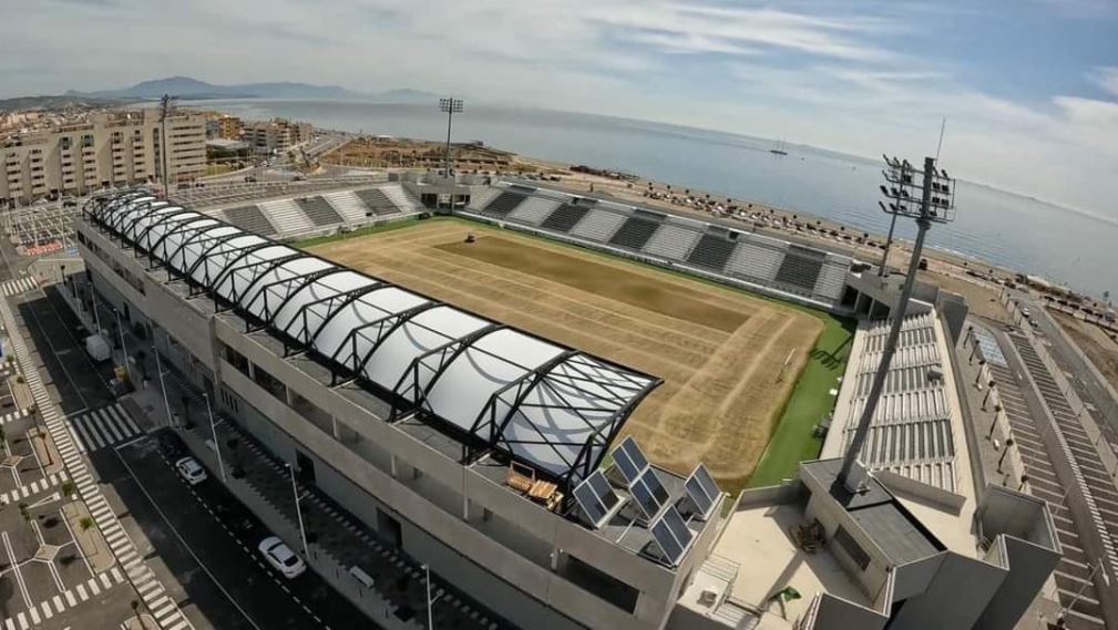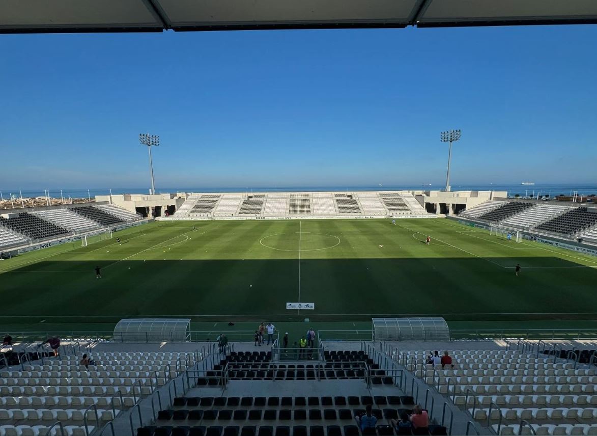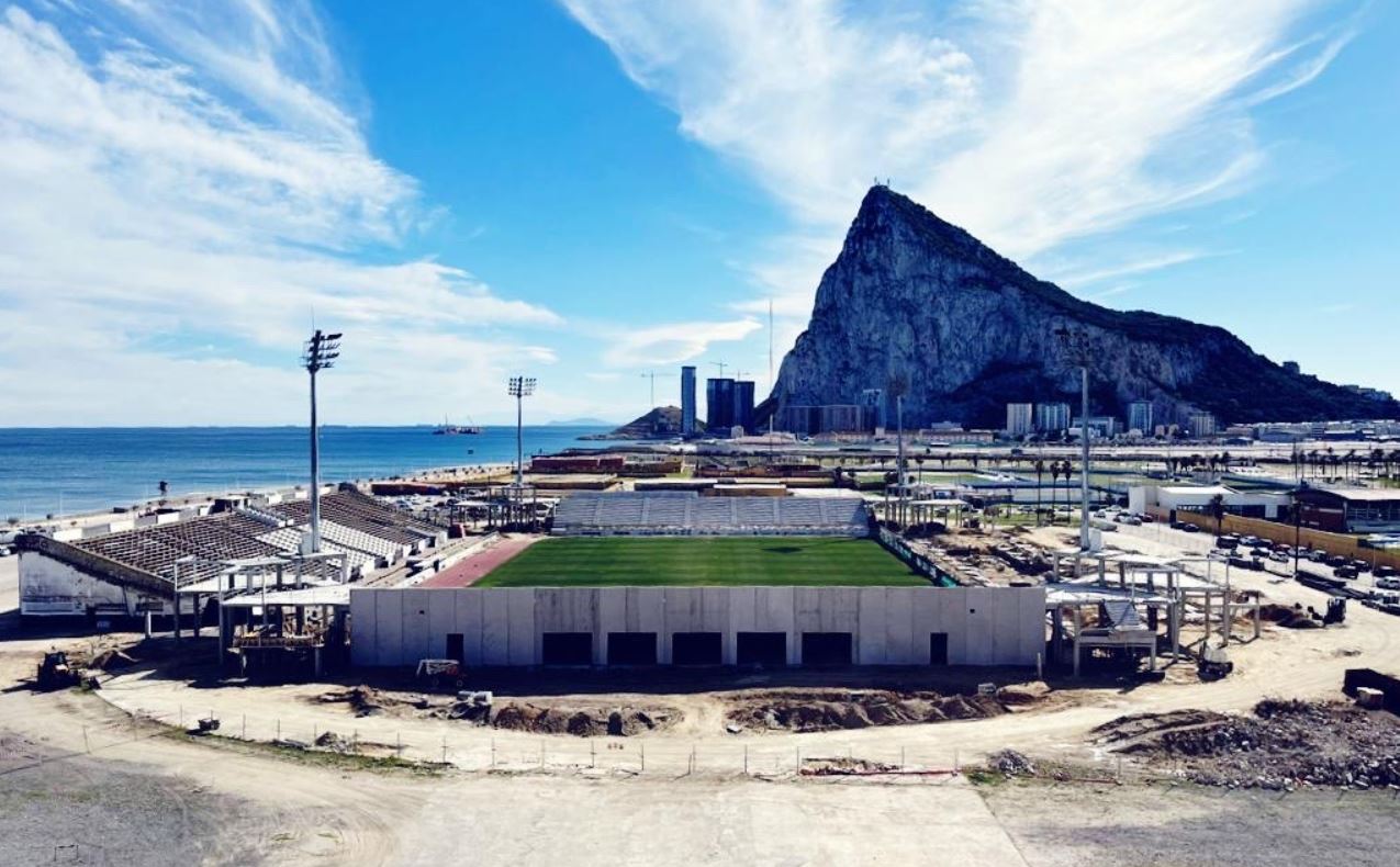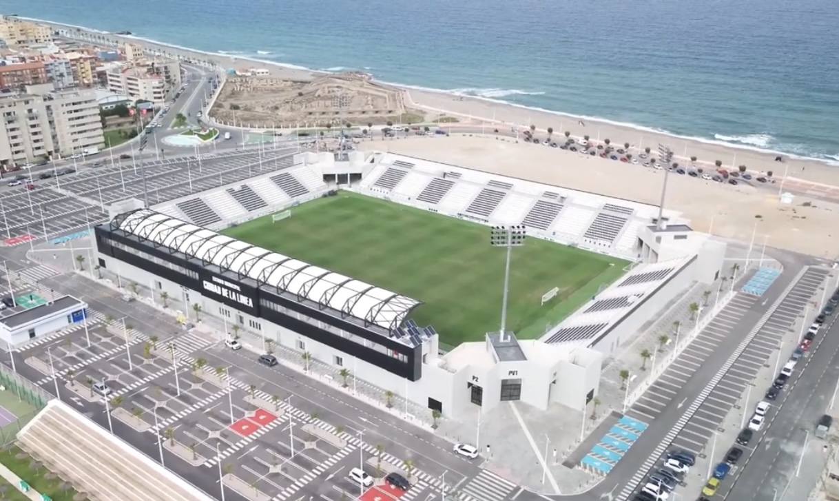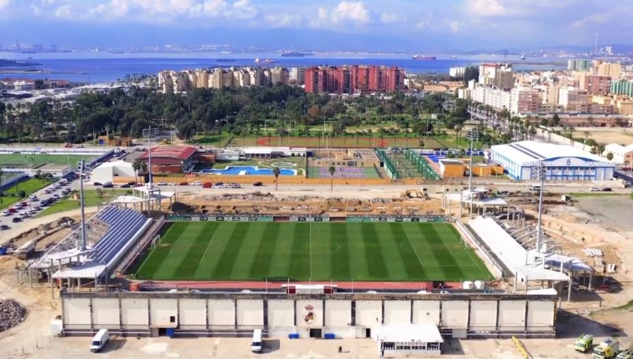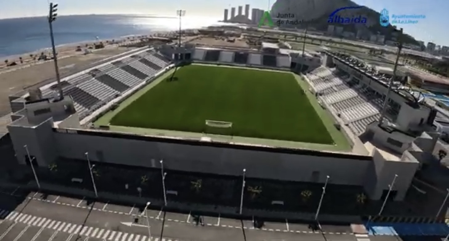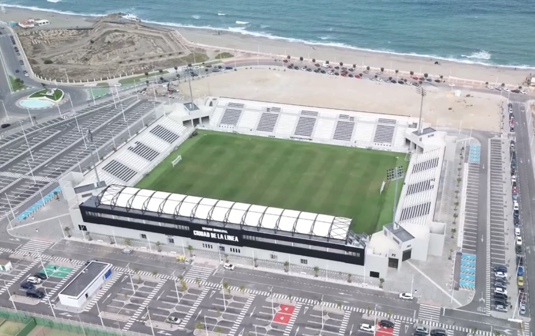 In 2022, the municipality started the €6m reconstruction of the newly titled Estadio Municipal Ciudad de La Línea. The bane of many a municipal stadium, the athletics track, was removed, and all existing structures demolished. The first sections to be redeveloped were the north and south ends, which were linked to the new main stand by curved corner sections that also housed the stadiums floodlight pylons. During the 2002-23 season, whilst the west side and north & south ends were under construction, the old eastern Preferencia was the only area of the ground in use, which restricted capacity to 3,997. The main stand on the eastern side was completed during the summer of 2024 and the new layout was inaugurated with a friendly against Real Betis on 14 July 2024.