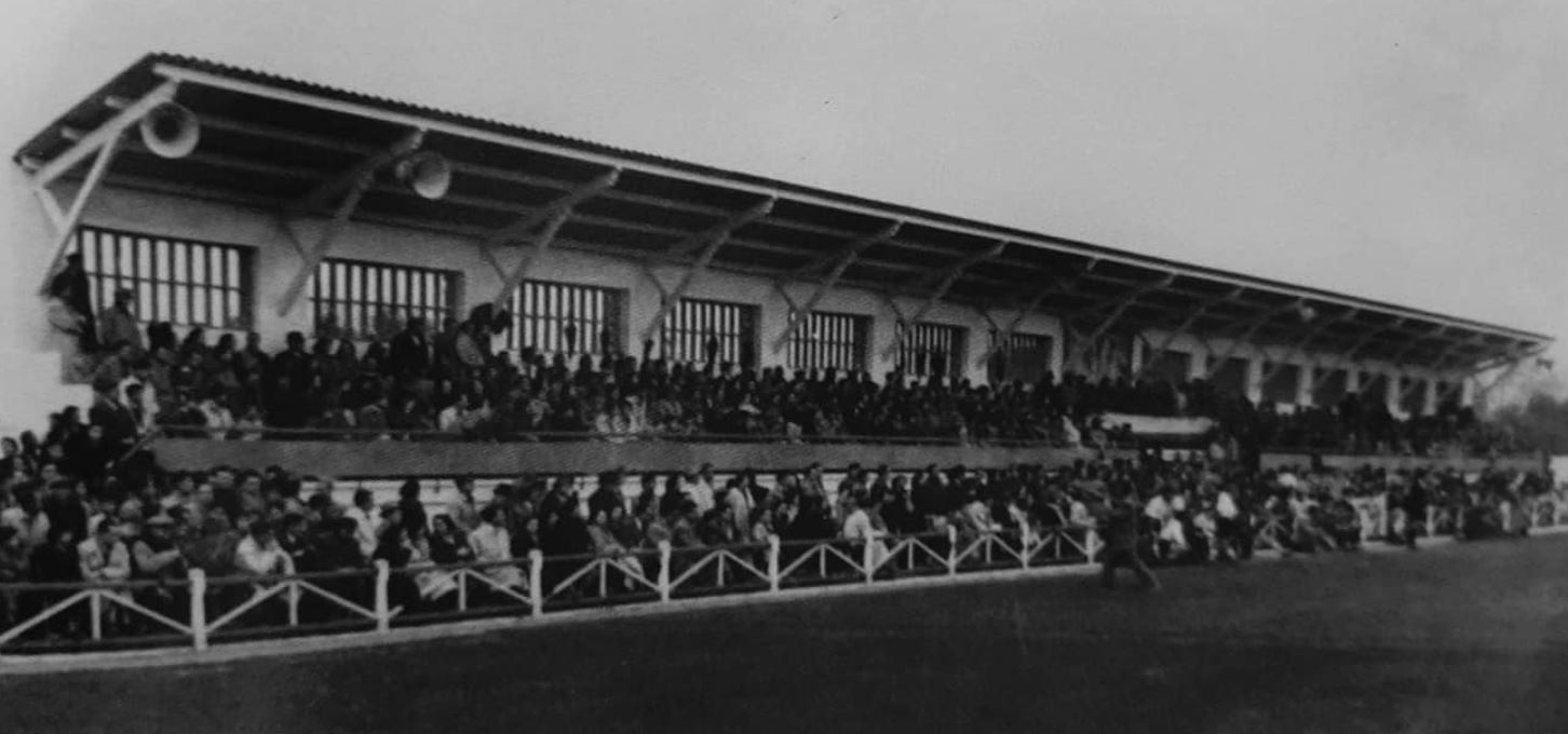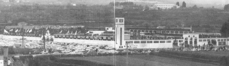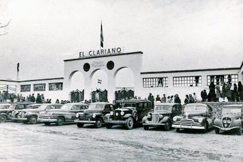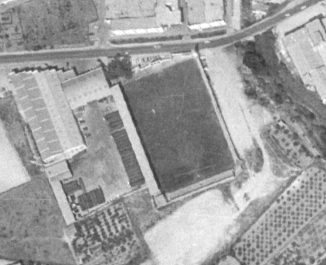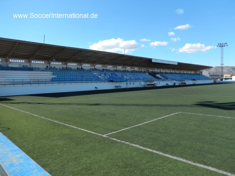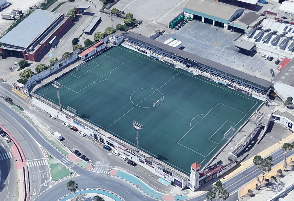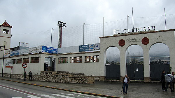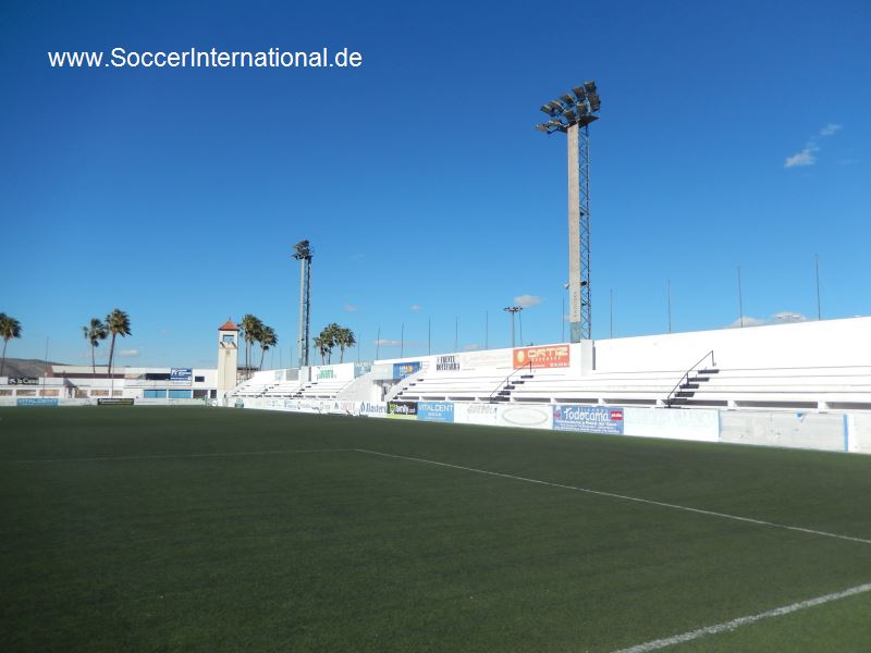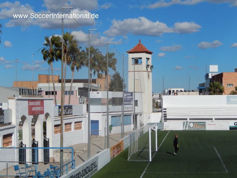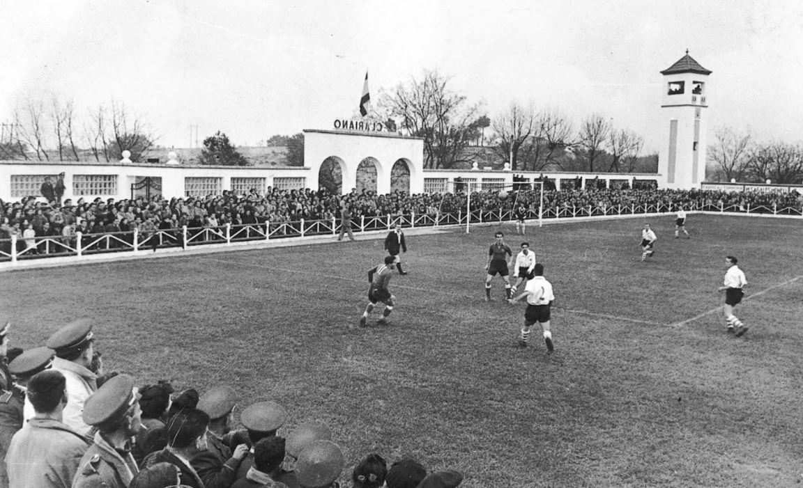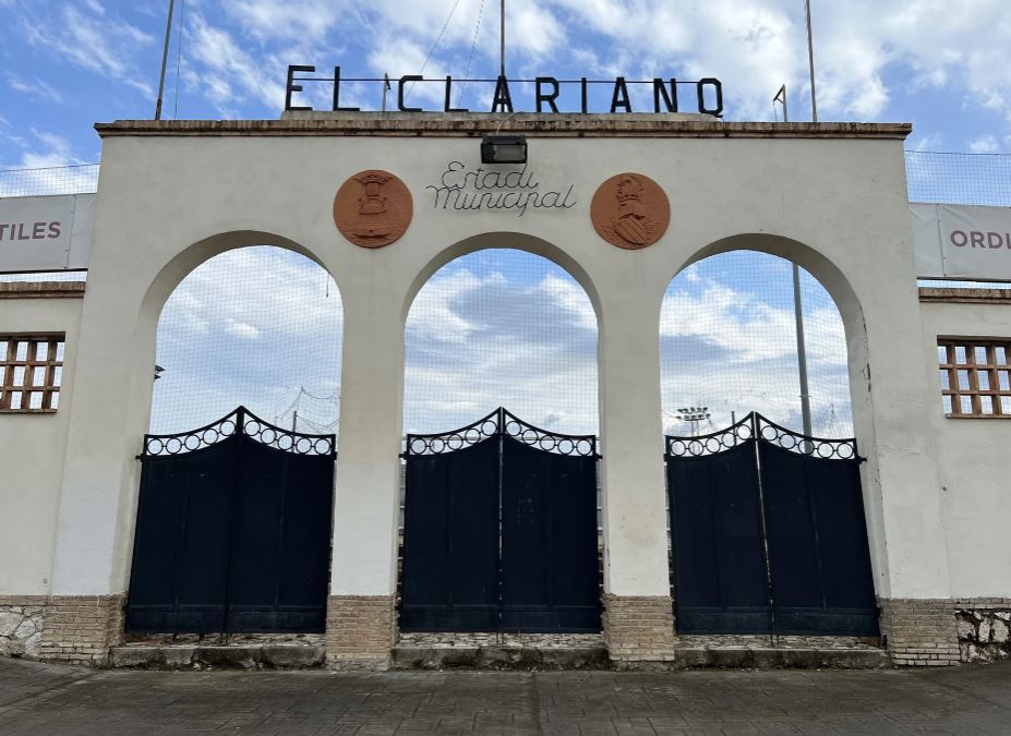 Throughout this time, the Camp de La Farinera (also known as the Campo de Deportes El Clariano) continued to serve as home. However, its rudimentary facilities led to a campaign to build a new, multi-sports facility. The municipality had originally considered refurbishing La Farinera, but was unable to reach an agreement with the landowners. In June 1950, following a donation of land and money from local businessmen, the municipality stumped up a further 320,000 pesetas to build a new stadium to the east of the town, on the road to neighbouring Albaida. The new stadium was named El Clariano and was opened by the Delegado Nacional de Deportes, General José Moscardó, on 10 January 1951 with a friendly match against Valencia CF, which the visitors won 2-9. The new stadium featured a half-length propped-roof grandstand on the west side of the enclosure and a narrow terrace opposite. Two ornate sets of gates were built at the north end and eastern side of the ground, whilst a bell tower stood in the northeast corner.
