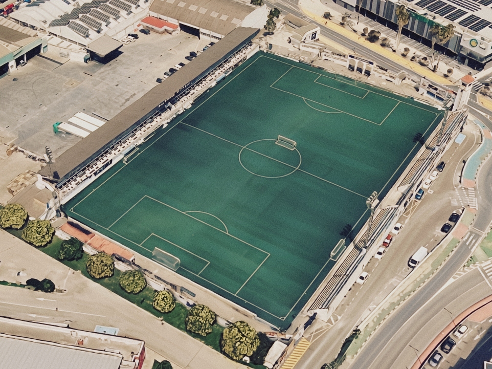 El Clariano is a delightful enclosure that is simple and pristine. The main feature, the west Tribuna, is bedecked with six rows of black and white seats that sit eight feet above pitch level. At the rear of the stand is a row of palcos, each featuring eight free-standing seats. Despite its smart appearance, it is an old design, with the tell-tell signs being just the one central access point for spectators and the low, narrow changing facilities beneath the stand. The northern end still features the bell tower and triple-arched gateway, whilst the east terrace is now divided into two sections, at the centre of which is the access point to the double-arched gateway. Artificial turf was installed in 2006 and upgraded in 2016. With an overall capacity of 5,000, El Clariano is an uncomplicated joy and stands out in an era where identikit stadiums have become the norm.