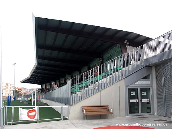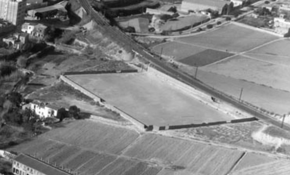 Before their move to the new stadium, UE Cornellà played matches at the Camp Municipal de la Vía Férrea. The ground was opened in 1941 and was the home ground of Atlètic Padró until UE Cornellà was formed in 1951. The ground was situated around 750m north of their current home. Via Férrea hosted the club’s successful football school, a system that has seen Jordi Alba come through its ranks. The only spectator accommodation was a single Tribuna on the northern side of the enclosure, which stood tight to the railway lines from which the ground takes its name. A simple cantilevered cover was bolted to the back wall and hung over five rows of seats and a rear viewing gallery. The stand had a capacity of 1000. On the southern side of the ground was the club’s football school, a smart semi-circular building which ran from the west corner to the halfway line. The western end had a small area of hard standing, whilst a grass terrace occupied the eastern end. The First XI played their final match at Vía Férrea on 13 May 2012, beating CF Pobla de Mafumet by a goal to nil. Within two years of their departure, the ground was demolished.