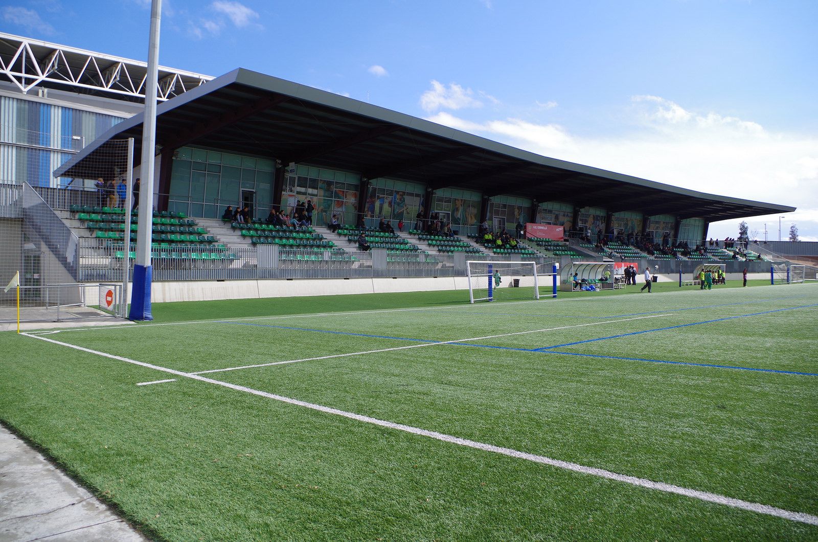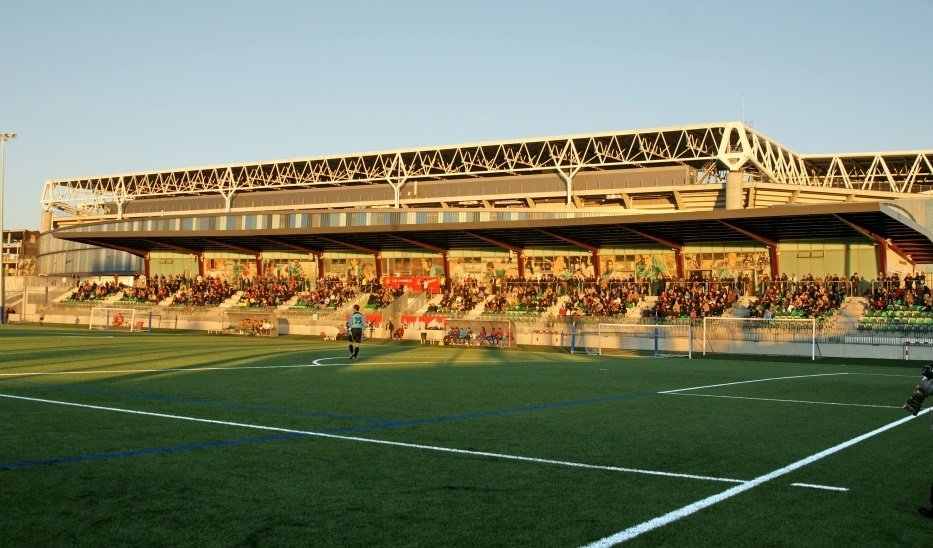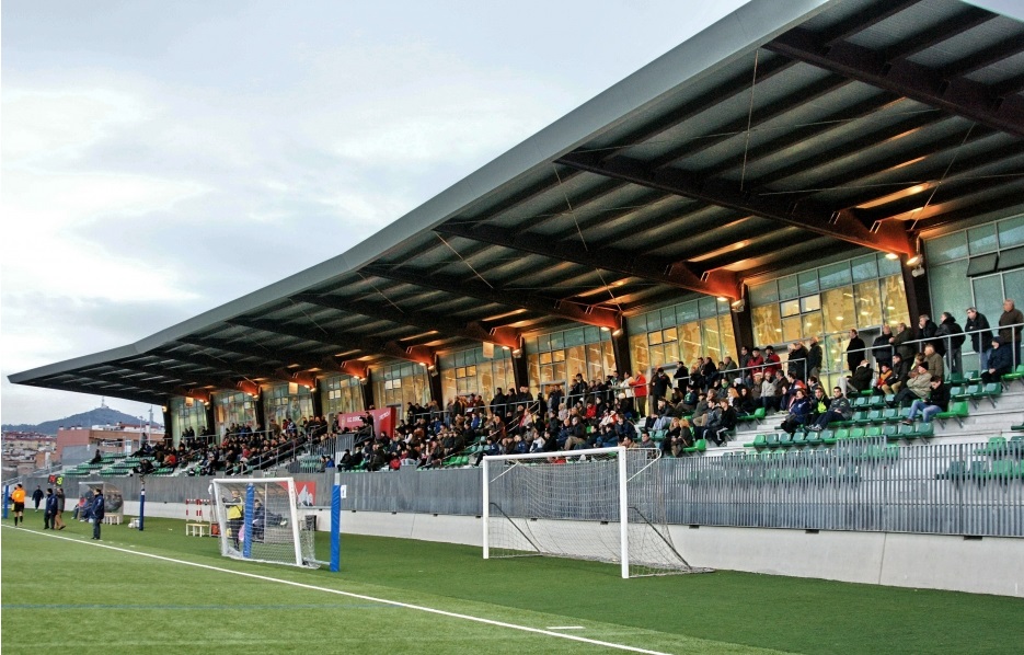 Before we cast our eyes over their new stadium, here is a potted history of the resident club. Unió Esportiva Cornellà was founded in 1951 following the merger of Fútbol Club Cornellà, Atlètic Padró, and Acadèmia Junyent. For the next 45 years, the club played in the lower reaches of the Catalan regional leagues, never getting above the sixth tier of the national pyramid. UE Cornellà finally reached the Regional Preferente in 1996, earning promotion to the Tercera three years later. That first season in the Tercera saw the club finish fourth and enter the playoffs, and although the club earned a creditable third-place finish in its group, it was not enough to earn promotion. Over the next decade, UE Cornellá was unable to match the success of that initial season, returning to the Regional Preferente on two occasions. Results improved following their promotion back to the Tercera in 2008, with the club reaching the playoffs for a second time in 2013, but lost to Deportivo La Coruña’s B team in the first knockout stage. Undeterred, UE Cornellà secured its first Tercera title in May 2014. They then went on to win promotion to Segunda B with a victory over CD Izarra in the playoffs.