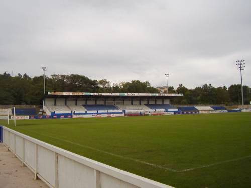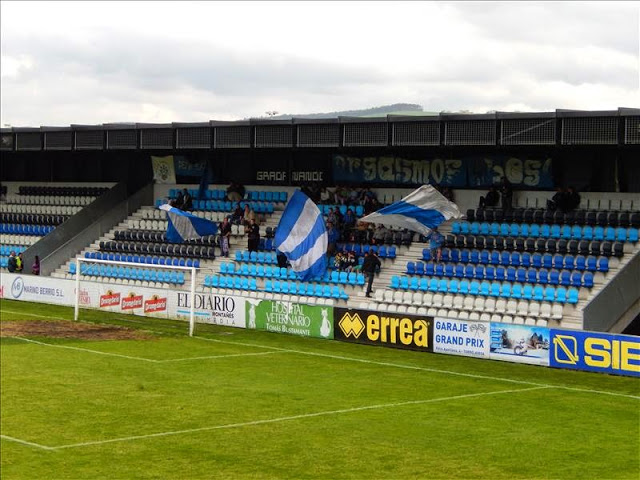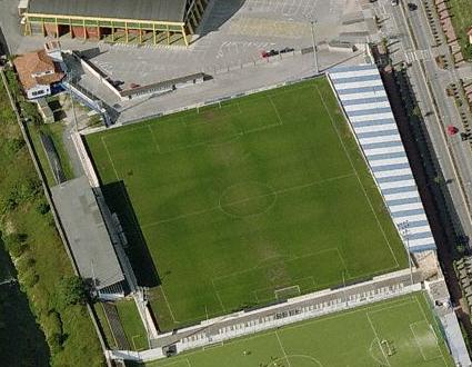 Following the club’s final promotion to Segunda B in 2009, the municipality announced plans for the redevelopment of El Malecón. This would necessitate the club relocating to the Campo Municipal Santa Ana, the home of CD Tropezon, a few miles south of Torrelavega in the village of Tanos. Whilst Santa Ana has little more than a short, raised main stand and hard standing around the rest of the pitch, the move was not a big a culture shock. Temporary seating was erected at the northern end of the ground and along the narrow east side. In addition, the changing facilities beneath the main stand were considerably better than those at El Malecon. Gimnástica played CD Guadalajara on 9 May 2010 in the final match of the 09-10 season at El Malecón, before moving south for the start of the 2010-11 season. Their first match at Santa Ana was on 5 September 2010 and saw Gimnástica beat Real Oviedo by two goals to nil.