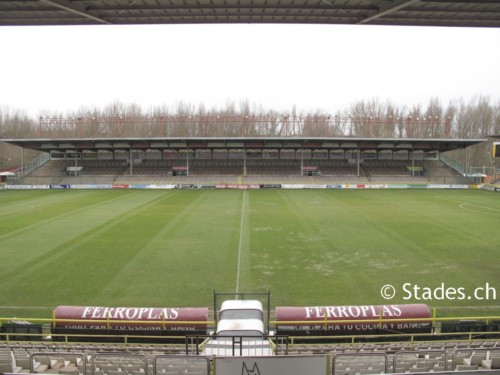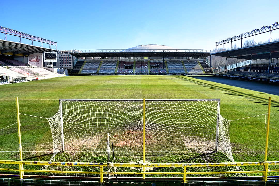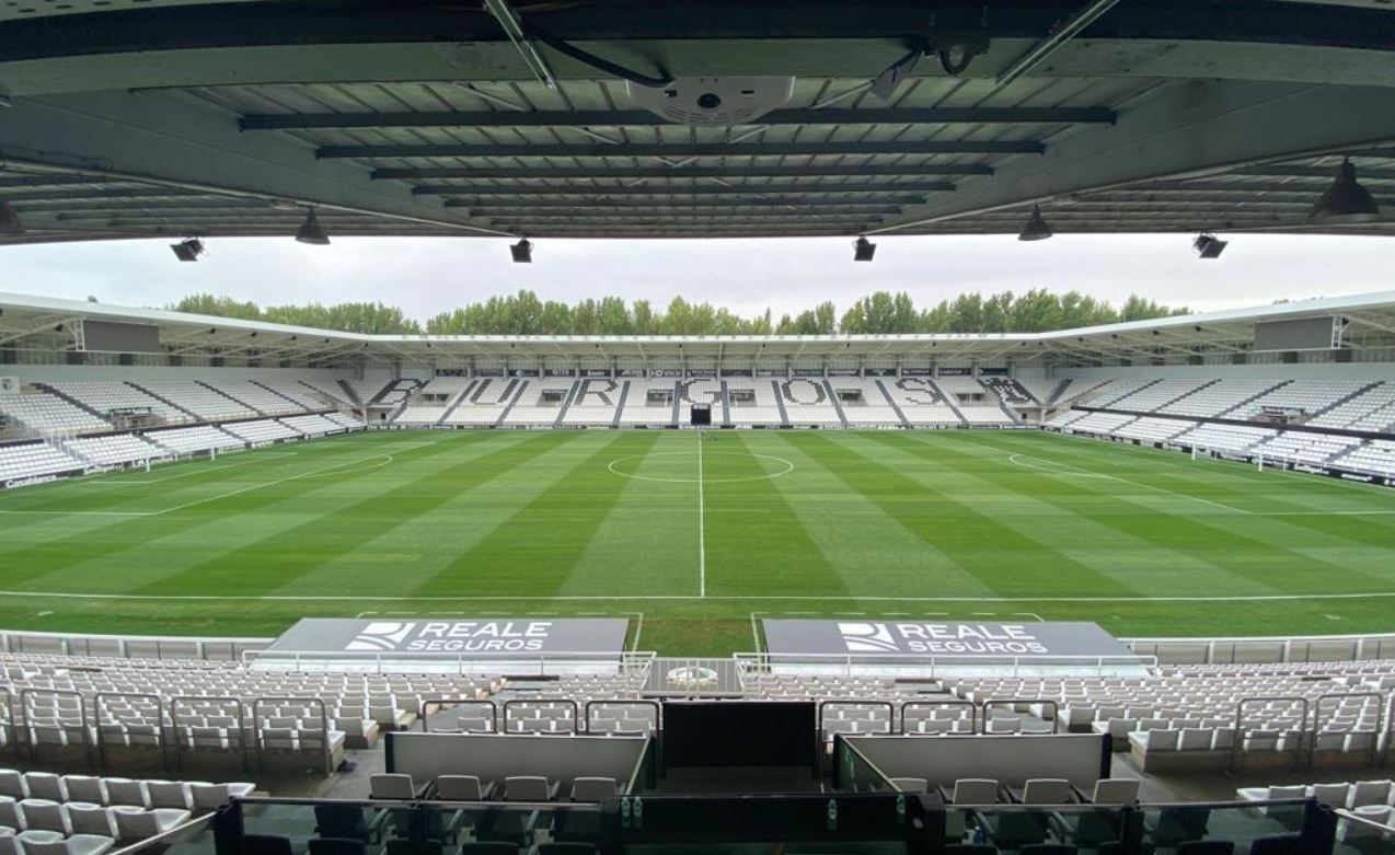 For many Spanish football fans, El Plantío is the epitome of an estadio Inglés or English-style stadium. Square, with four stands close to the pitch, El Plantío can have a fearsome atmosphere when full. It can also be one of Spain’s coldest stadiums, rivalling Valladolid’s Nuevo José Zorrilla and Soria’s Nuevo Los Pajaritos for the title. However, the stadium did look warm in 1991 when blocks of red, tan, and white seats were installed on three sides of the ground. Unfortunately, the Iberian sun got to them, and the red and tan seats faded, leaving the three stands to look like large blocks of Neapolitan ice cream. Despite having propped cantilevered stands, these stands offered excellent views, whilst the south stand was terraced except for a 60-metre stretch of benching on the lower tier. El Plantío is also an example of a stadium’s location being chosen over design. It’s squeezed between residential housing and the riverbank, so the pitch runs on an east-west axis. This means that the main tribuna faces the sun in the late afternoon or early evening.