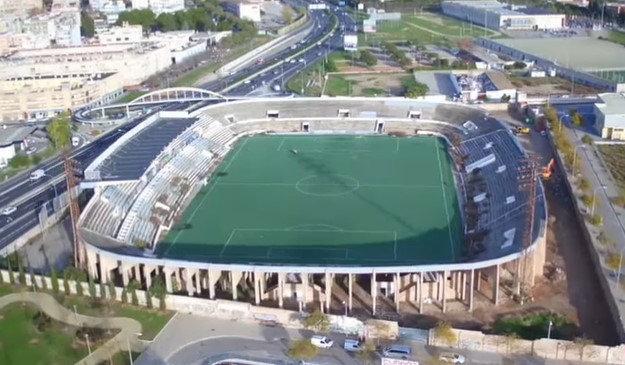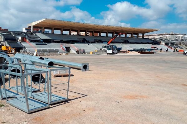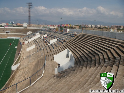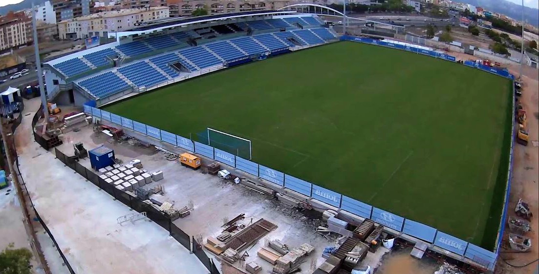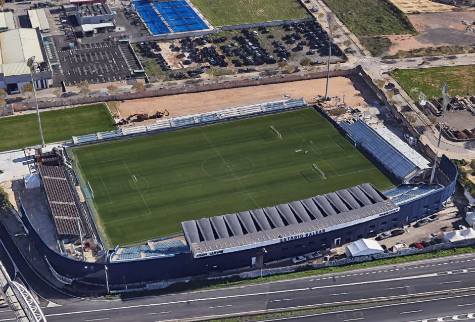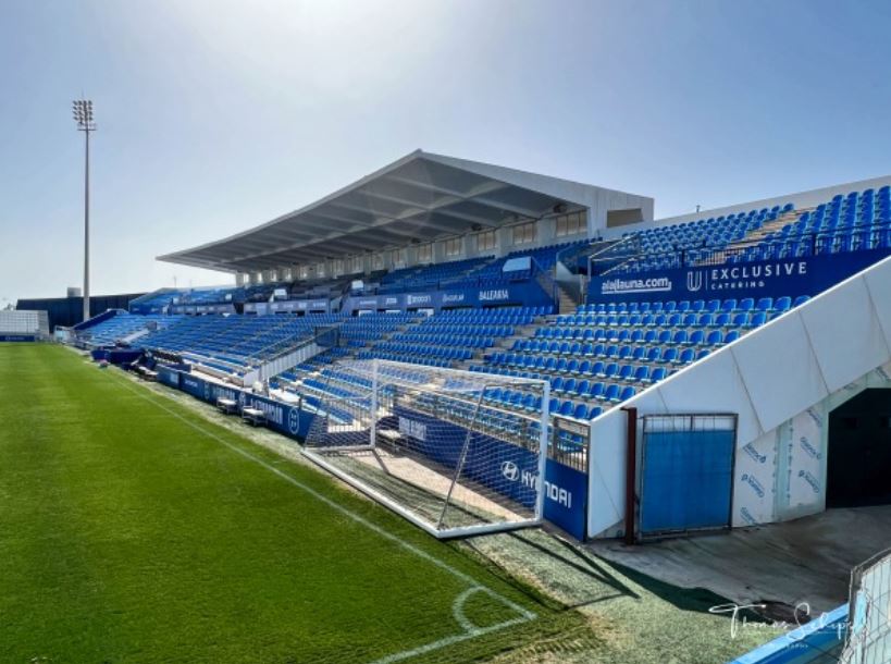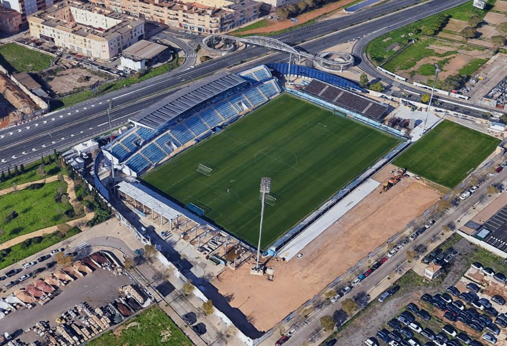 Safety concerns over the stadium came to a head in June 2013, when the local council closed it to all spectators. In June 2014, the local council agreed to a €650,000 refurbishment of the old Estadio Balear, which would see the demolition of the large, open, horseshoe-shaped terrace. It was planned to be replaced with three much smaller, free-standing terraces, whilst the main covered tribuna would remain, albeit detached from the rest of the ground. The new capacity was set at 5,500, and Atlético, for their part, agreed to use the revamped stadium for a minimum of 10 years. However, delays in starting the rebuild saw Atlético spend the 2013-14 season at the Estadio Magaluf, and then decamp to the Campo de Son Malferit de Palma in August 2014, which is around 500m south of the Estadio Balear. Son Malferit had a capacity of 1250, most of which is found under a cover that runs the full length of the west side of the enclosure.